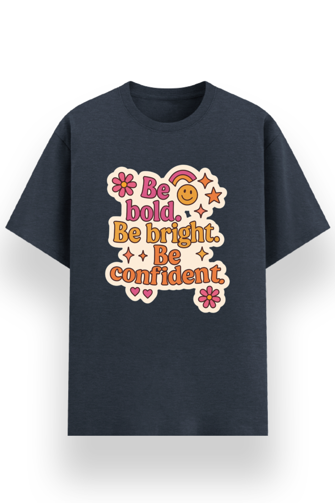 Be Bold. Be Bright. Be Confident. – Women’s Unisex Fit T-Shirt | Motivational Graphic Tee | Recycled Poly Cotton | Bio-Washed