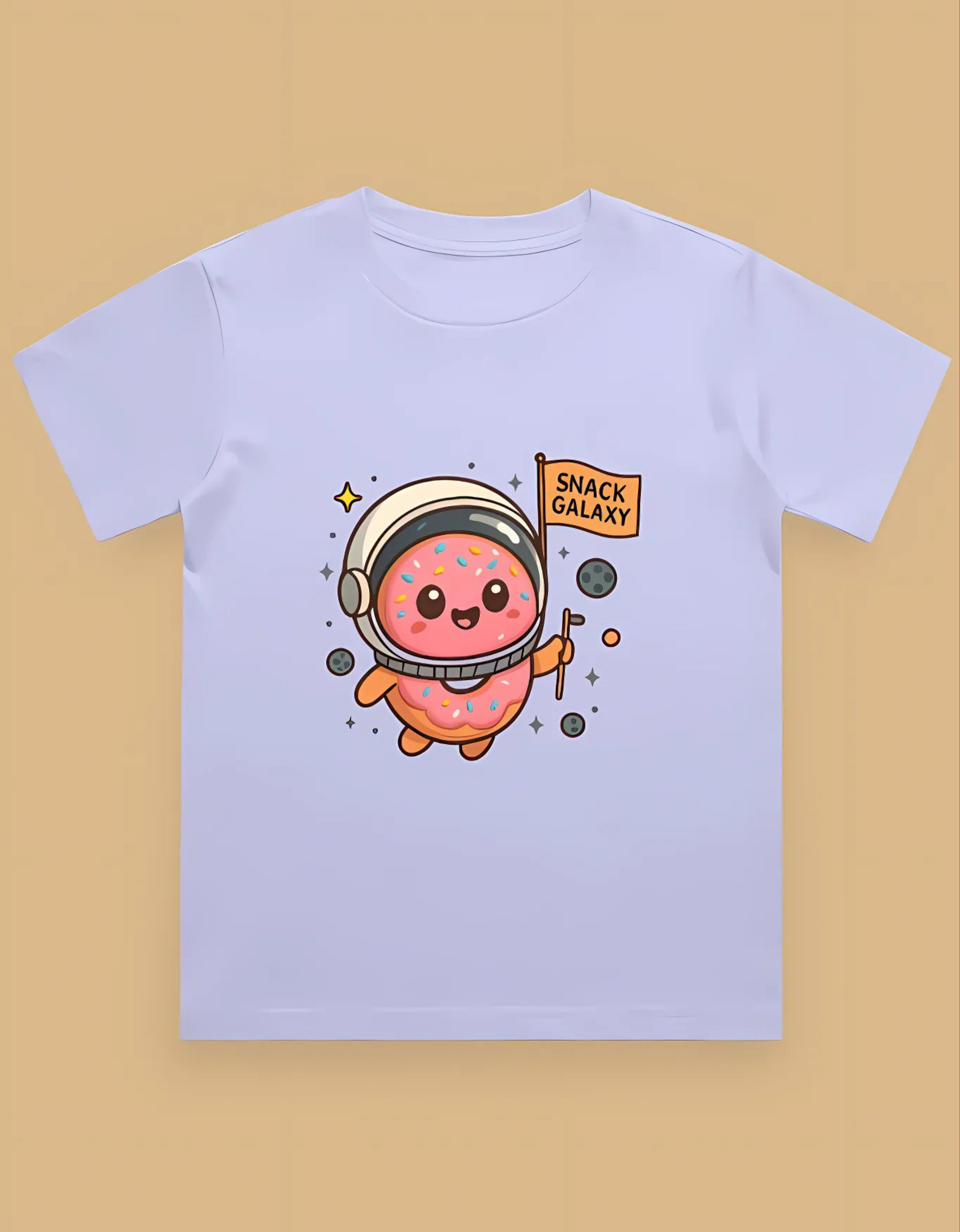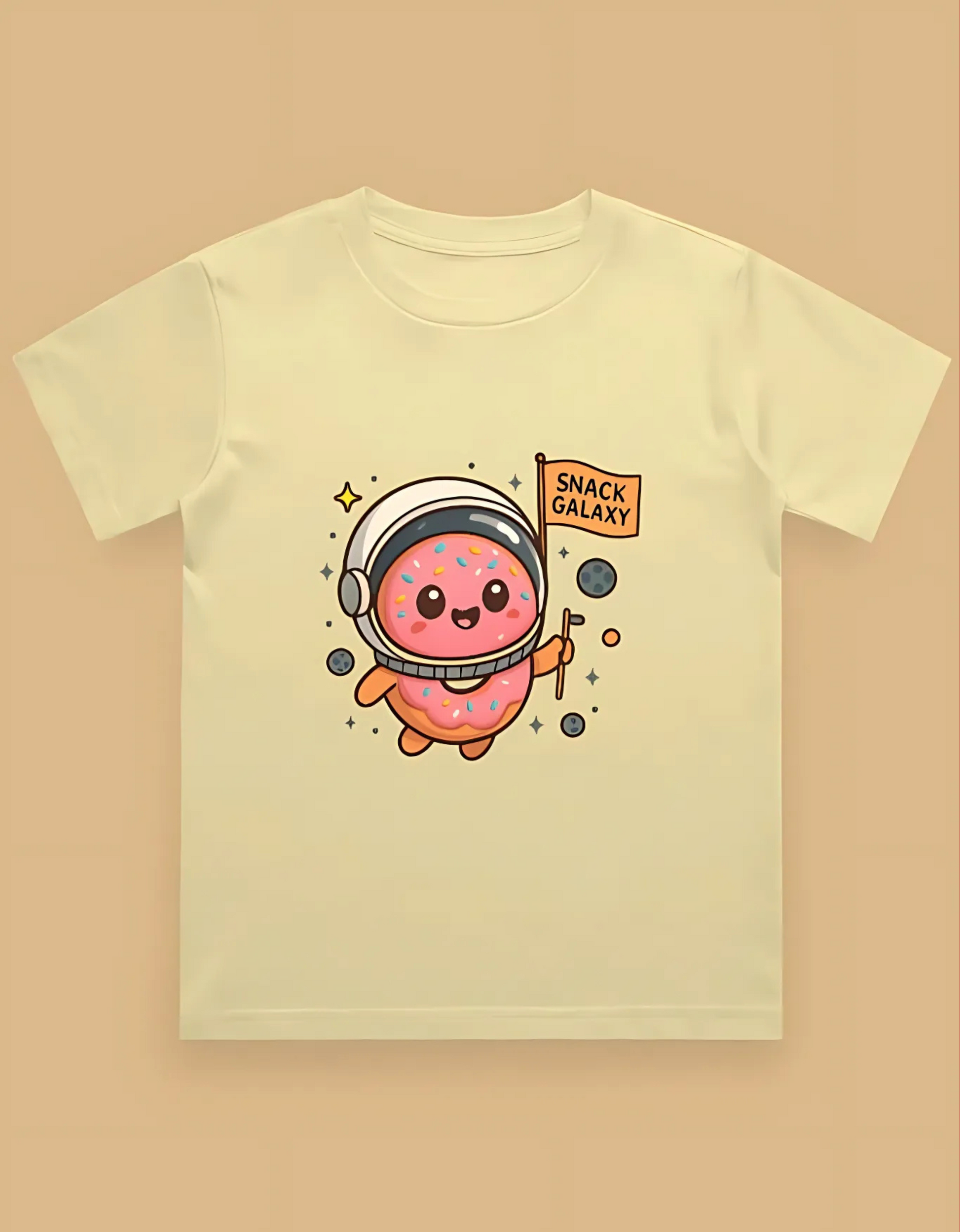 Boys' Crew Neck T-Shirt – “Snack Galaxy” Donut Astronaut Print | 100% Cotton | 180 GSM | Bio-Washed | Regular Fit Tee