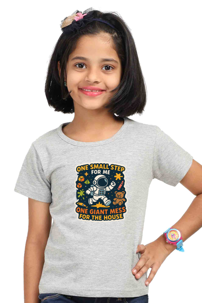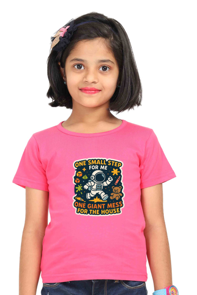 Girls’ Astronaut Print T-Shirt – “One Small Step, One Giant Mess” | 100% Cotton | 180 GSM | Super Combed