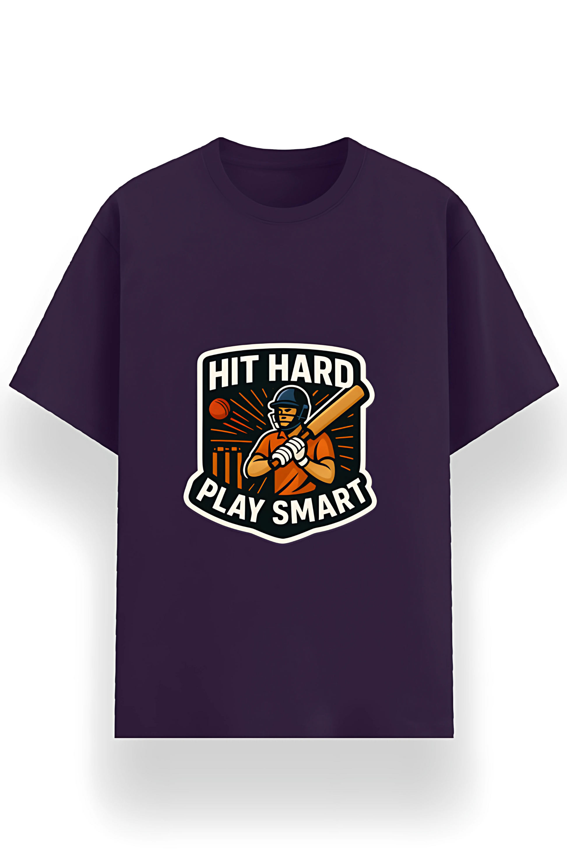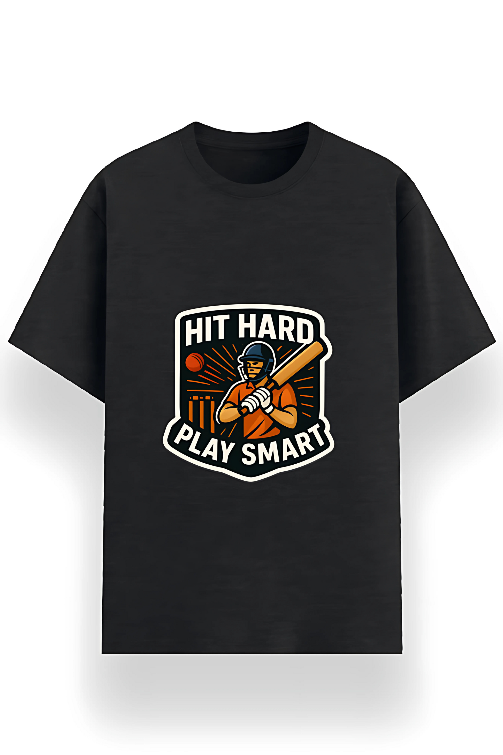 Hit Hard Play Smart Cricket Graphic Men’s T-Shirt – 180 GSM | Poly Cotton | Recycled Fabric | Unisex Fit