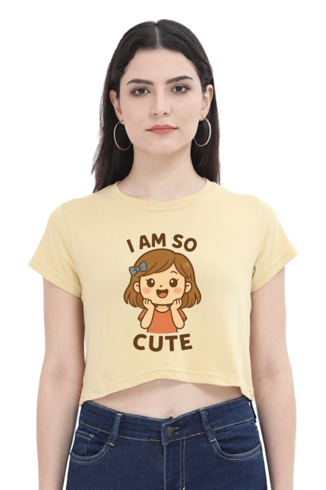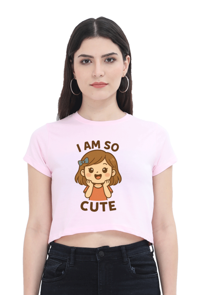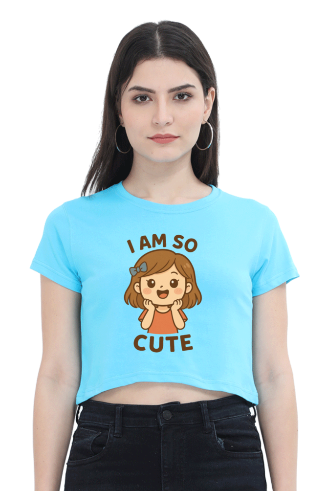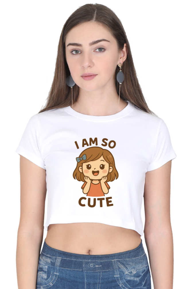 I Am So Cute - Crop Top for Women – 100% Cotton Graphic Tee | 180 GSM | Bio-Washed | Cute Casual Wear