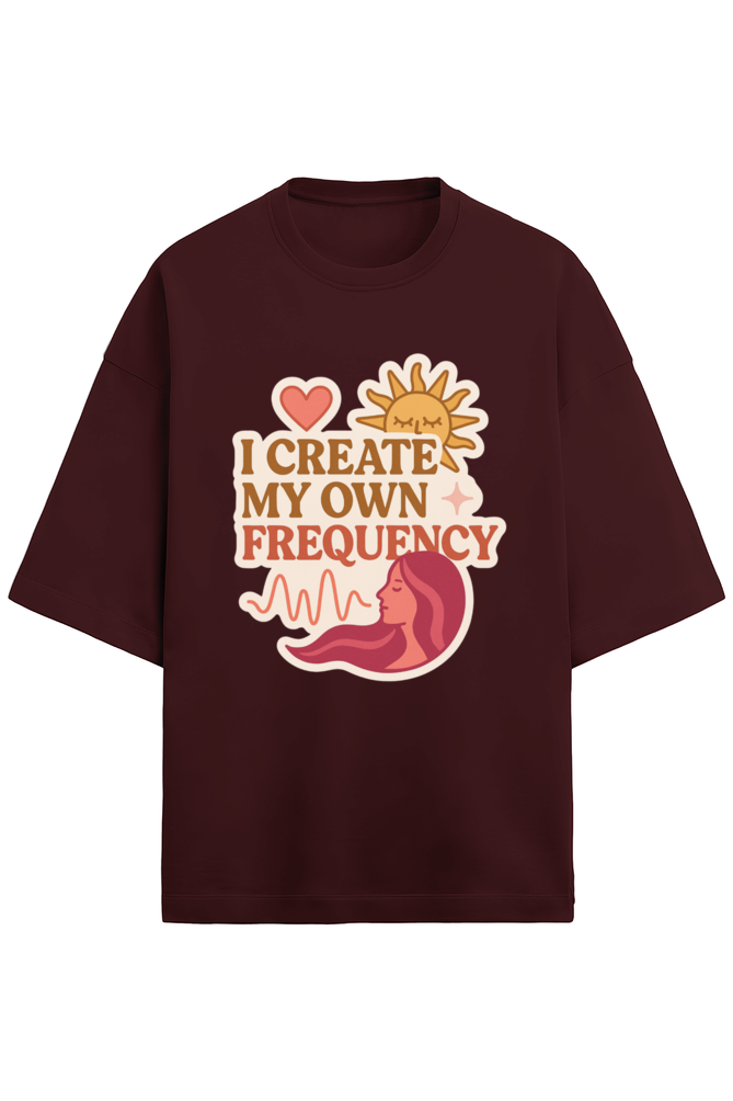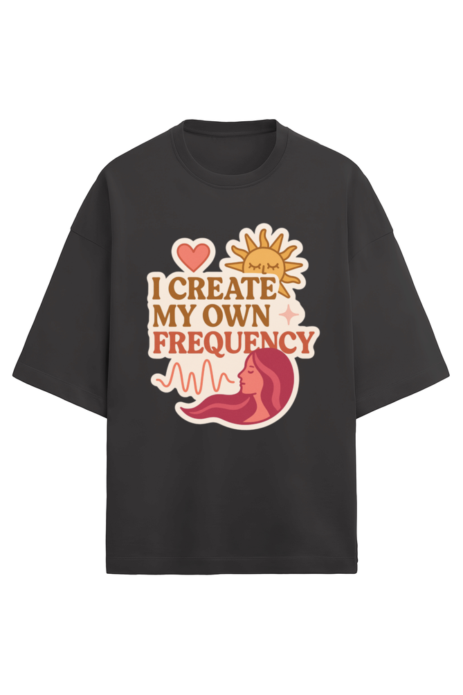 I Create My Own Frequency Oversized Terry T-Shirt for Women – 280 GSM | Drop Shoulder | Unisex Fit | Cotton Blend