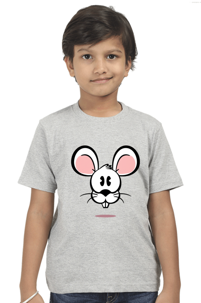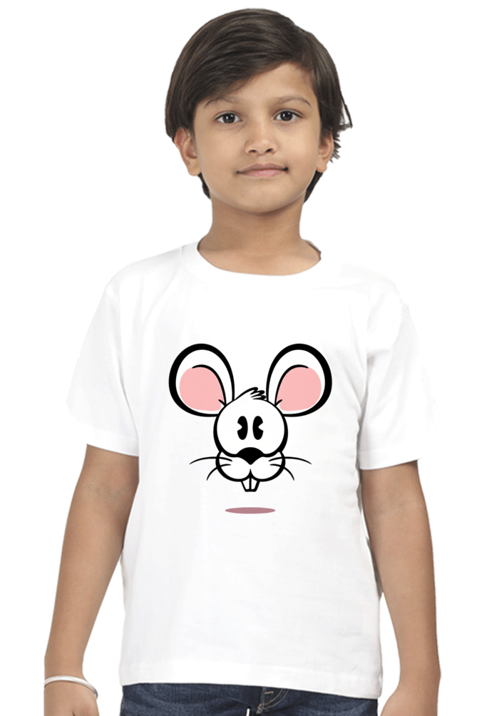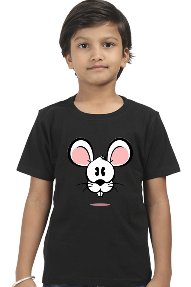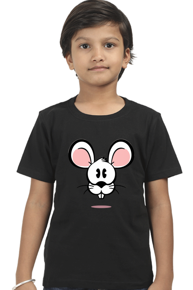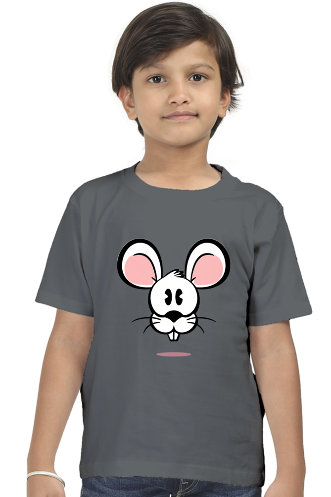 Kids' Cute Mouse Face Printed T-Shirt | 180 GSM, 100% Cotton, Pre-Shrunk, Bio-Washed, Lycra Rib Neck, Unisex Regular Fit
