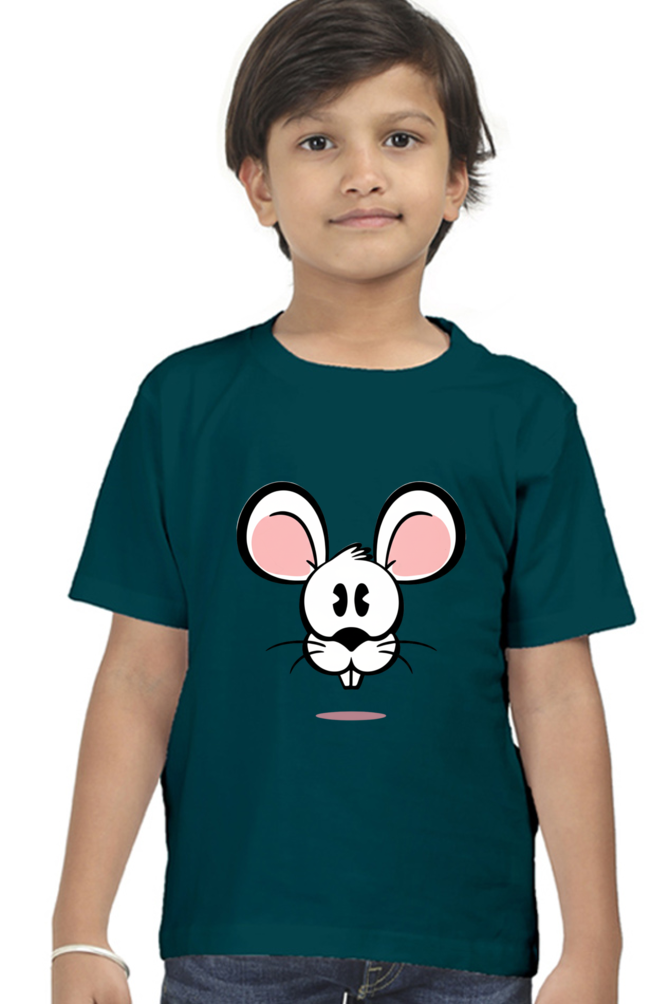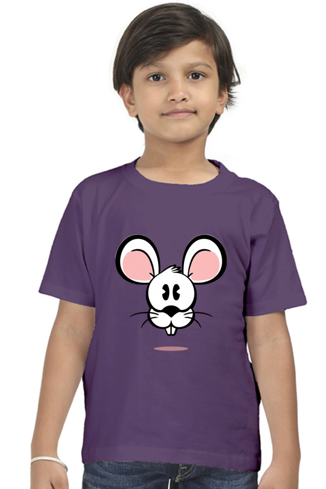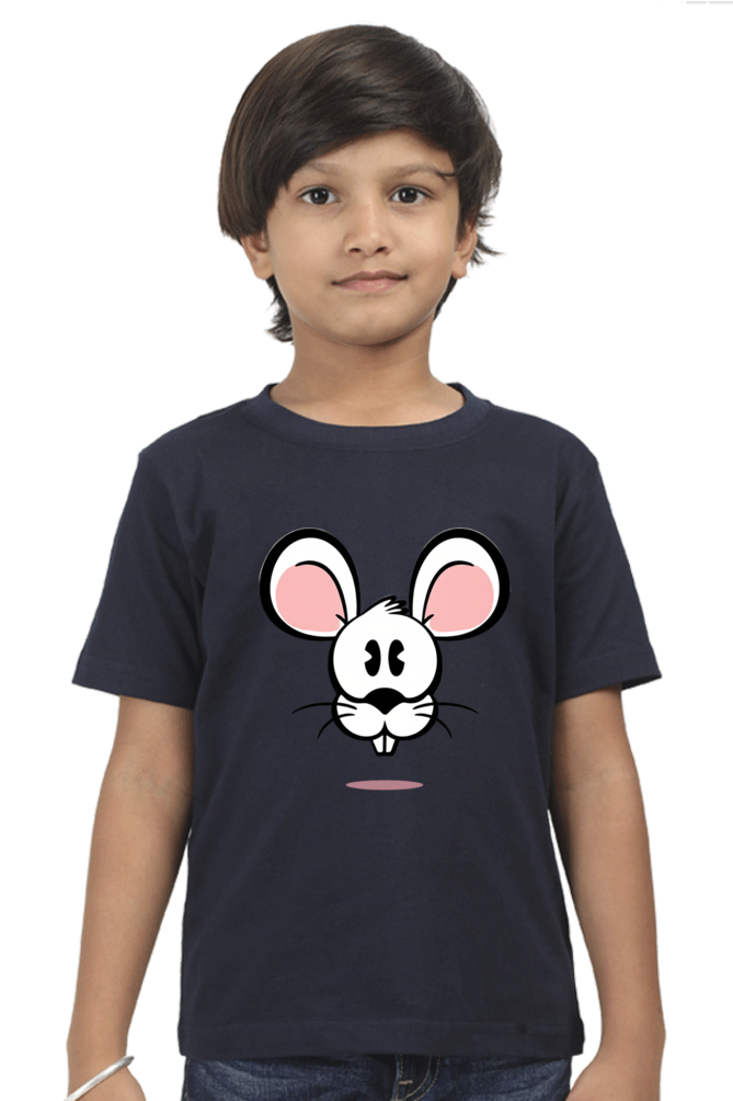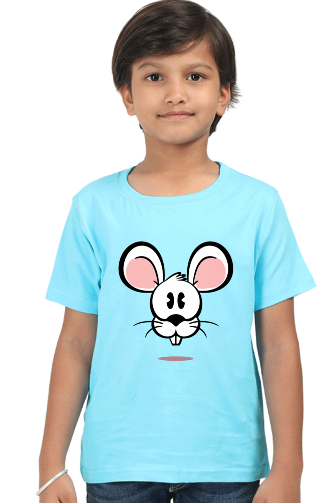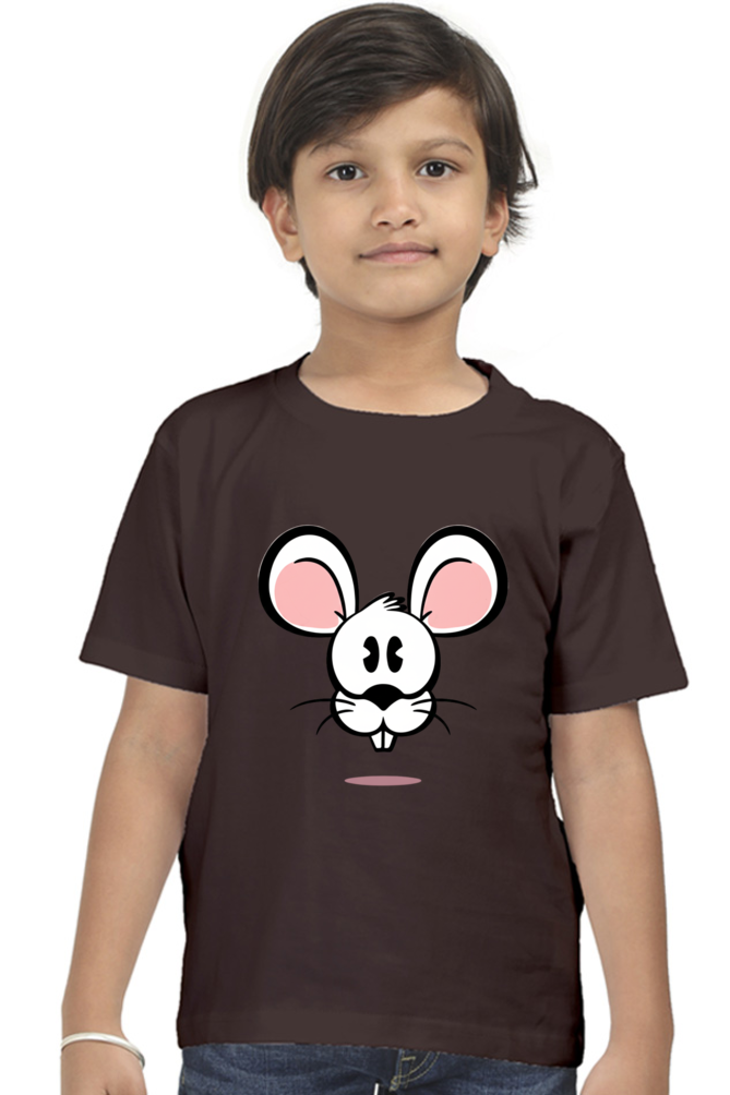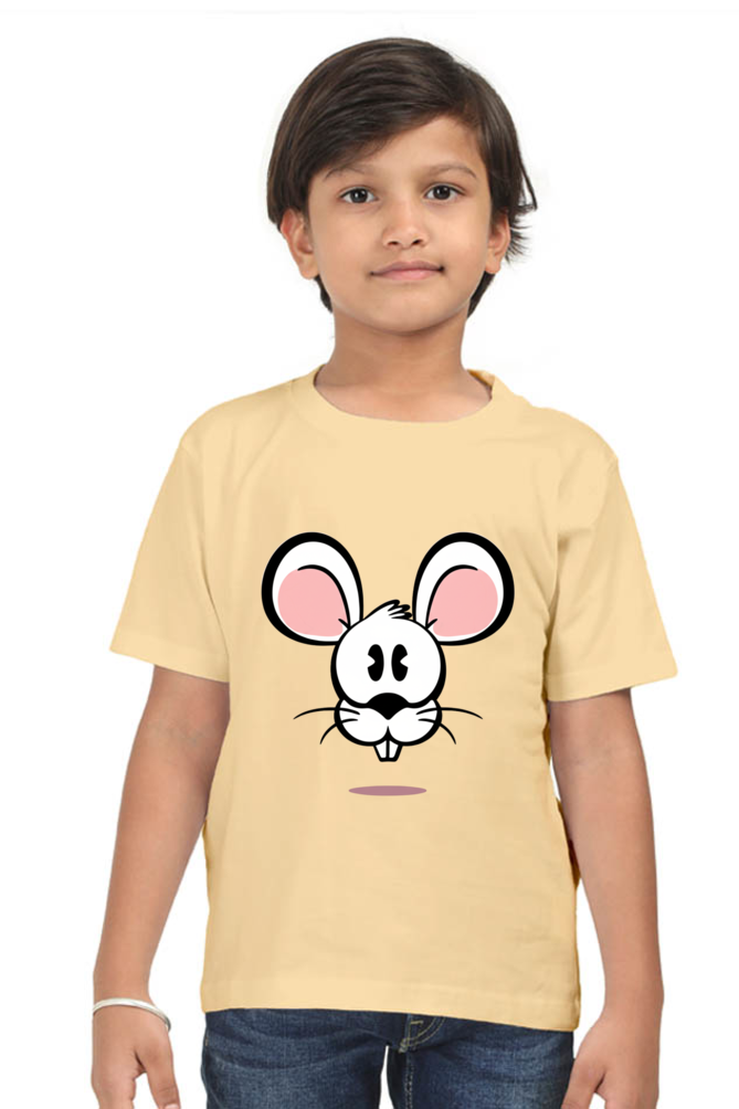 Kids' Cute Mouse Face Printed T-Shirt | 180 GSM, 100% Cotton, Pre-Shrunk, Bio-Washed, Lycra Rib Neck, Unisex Regular Fit