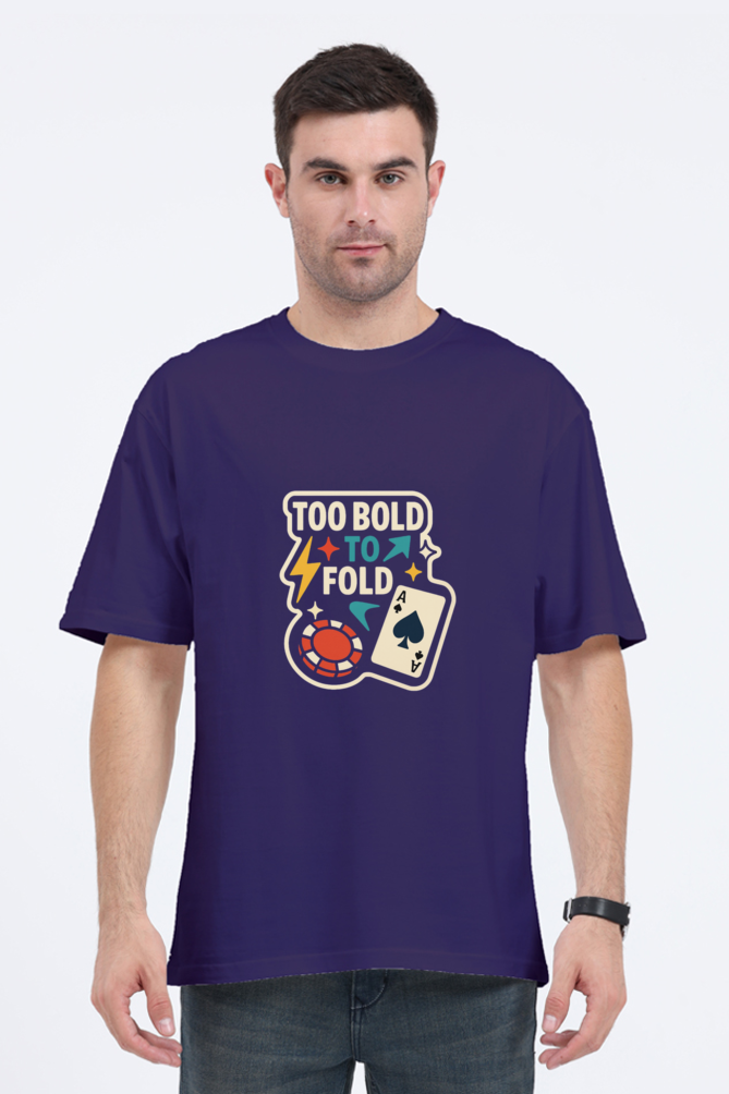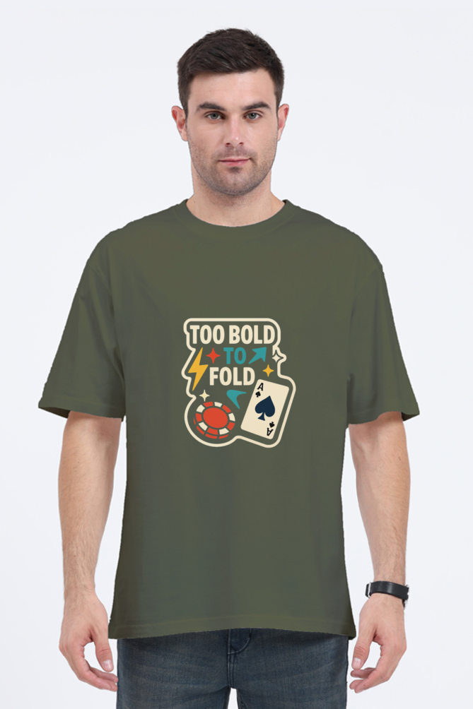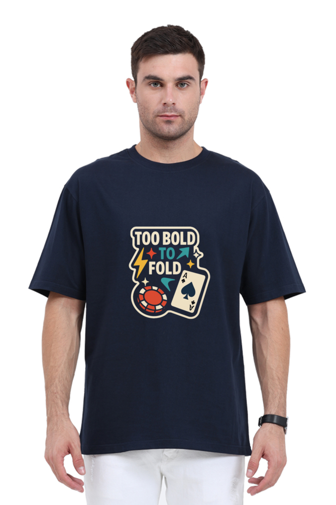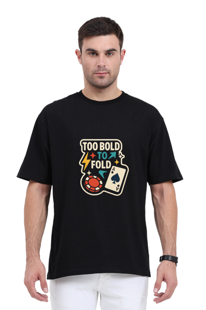 Men’s Classic Oversized T-Shirt – “Too Bold to Fold” Poker Graphic | 240 GSM 100% Cotton | Unisex Heavyweight Streetwear