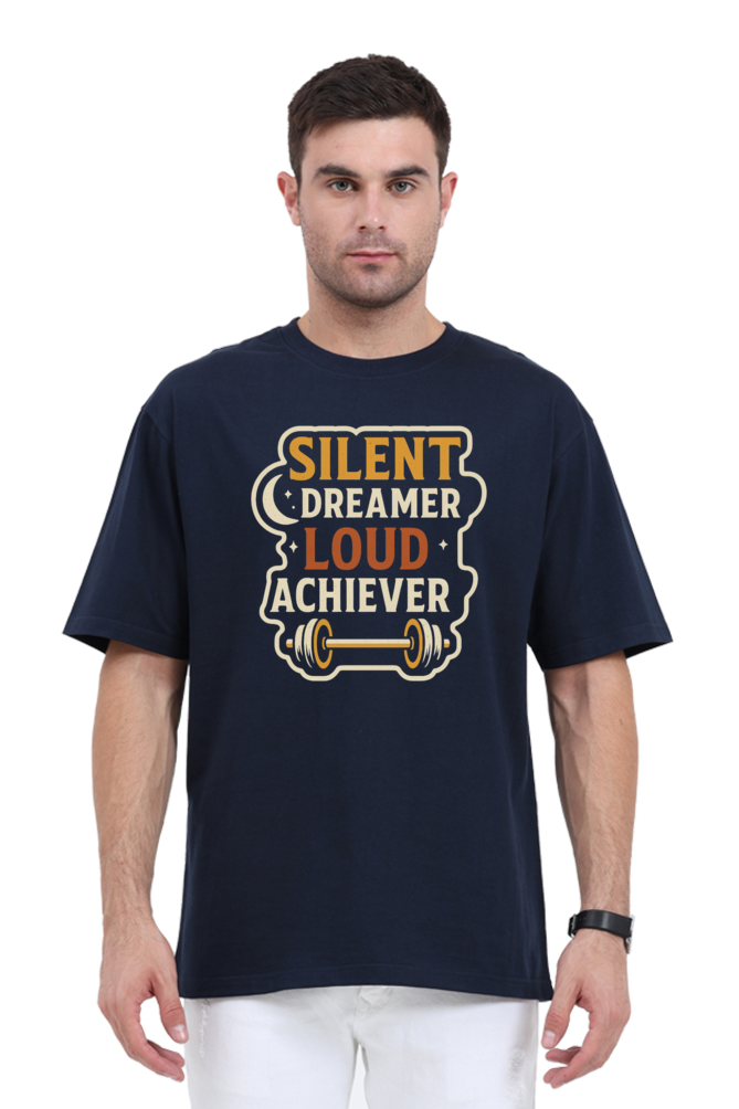Men’s Oversized T-Shirt – “Silent Dreamer Loud Achiever” Motivational Print – 100% Cotton, 180 GSM, Unisex Fit