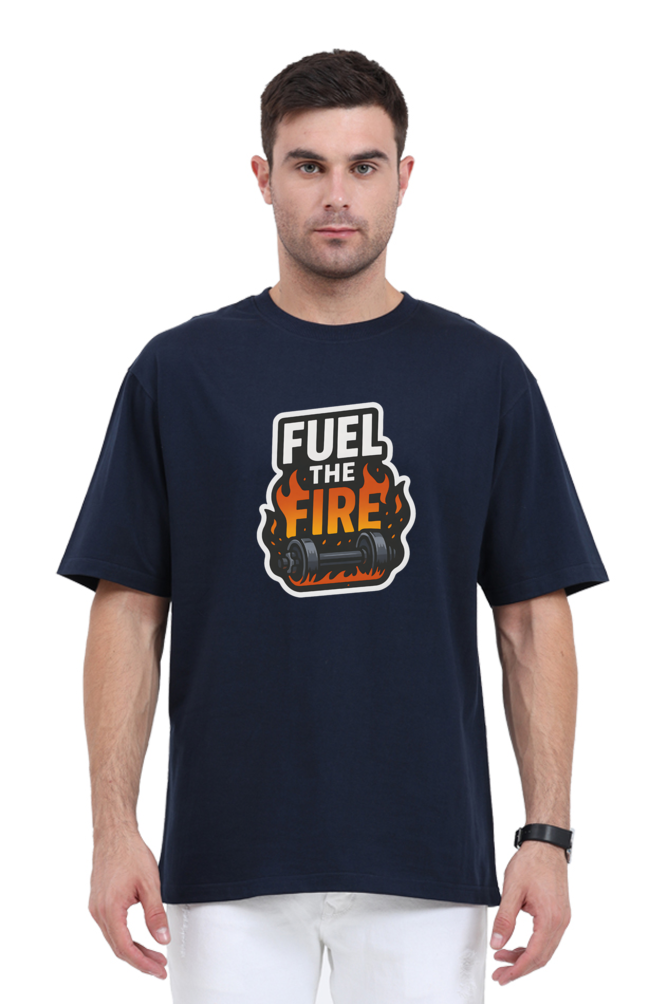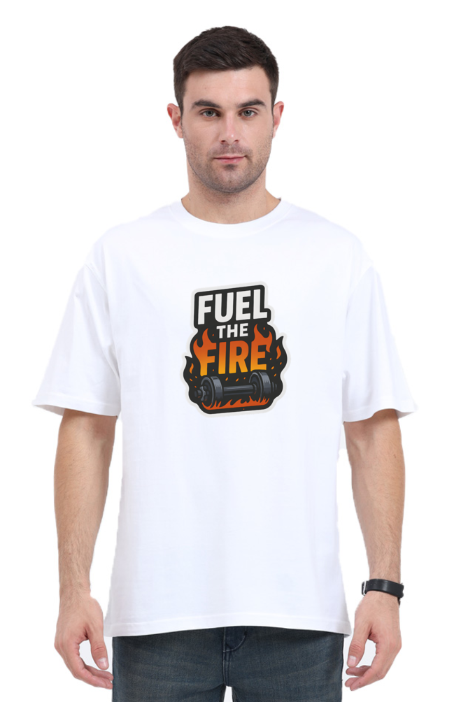 Men's "Fuel The Fire" Dumbbell Print Oversized T-Shirt - 100% Cotton, 180 GSM, Unisex Style