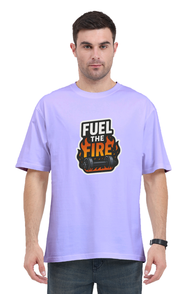 Ignite your workout wardrobe with the Men's "Fuel The Fire" Dumbbell Print Oversized T-Shirt. Featuring bold, motivational text and a dynamic dumbbell graphic, this t-shirt is designed to inspire your fitness journey. Crafted with premium 100% cotton fabric, it offers superior comfort and breathability for all-day wear, whether you're hitting the gym or lounging at home.