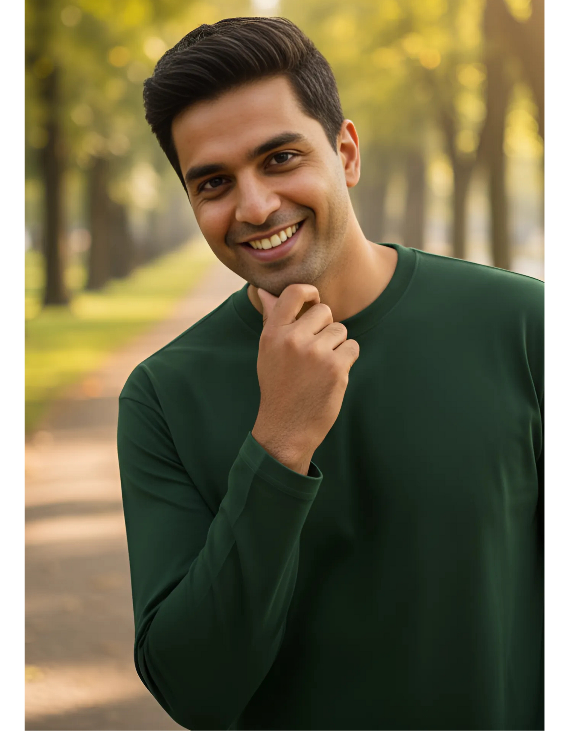 Men's Full Sleeve Bottle Green T-Shirt | 100% Super Combed Cotton | Pre-Shrunk & Bio Washed