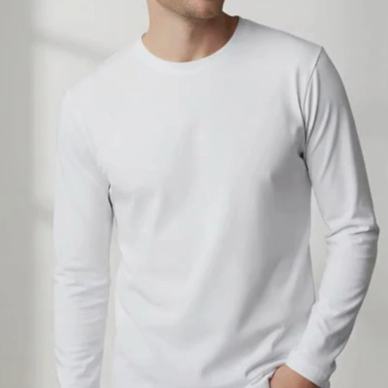 Classic White Long Sleeve T-Shirt for Men - 180 GSM Super Combed Cotton Tee