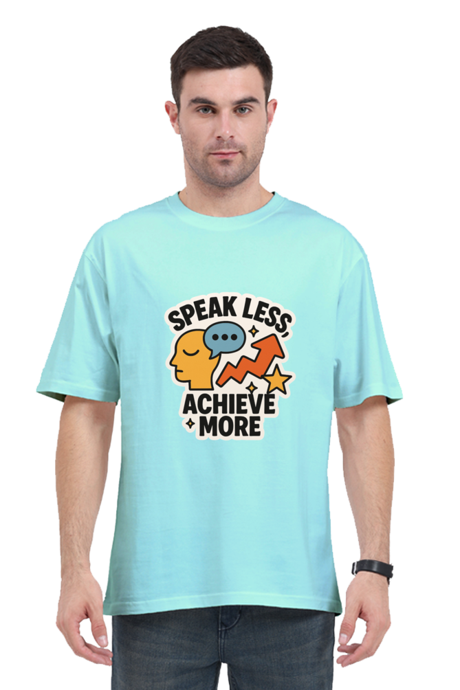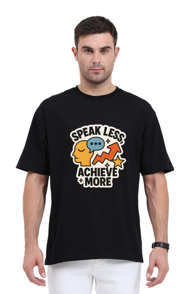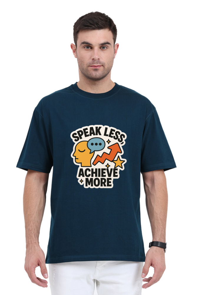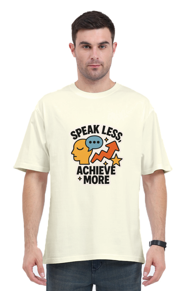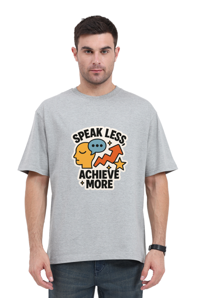 Men's Oversized T-Shirt – “Speak Less, Achieve More” Motivational Graphic – 240 GSM, 100% Cotton, Bio-Washed, Unisex Fit