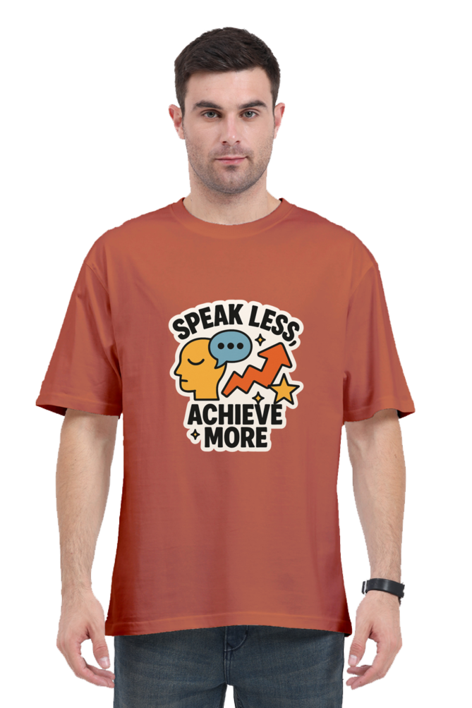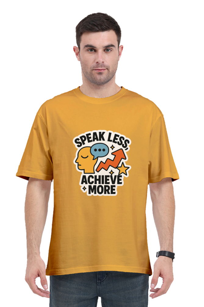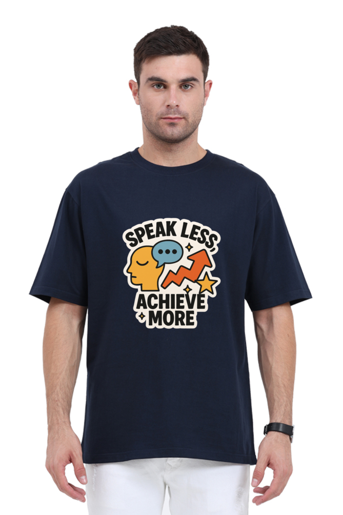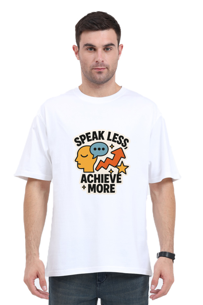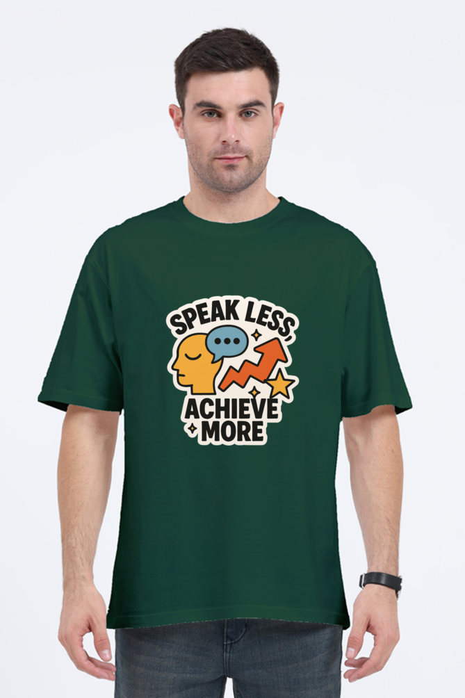 Men's Oversized T-Shirt – “Speak Less, Achieve More” Motivational Graphic – 240 GSM, 100% Cotton, Bio-Washed, Unisex Fit