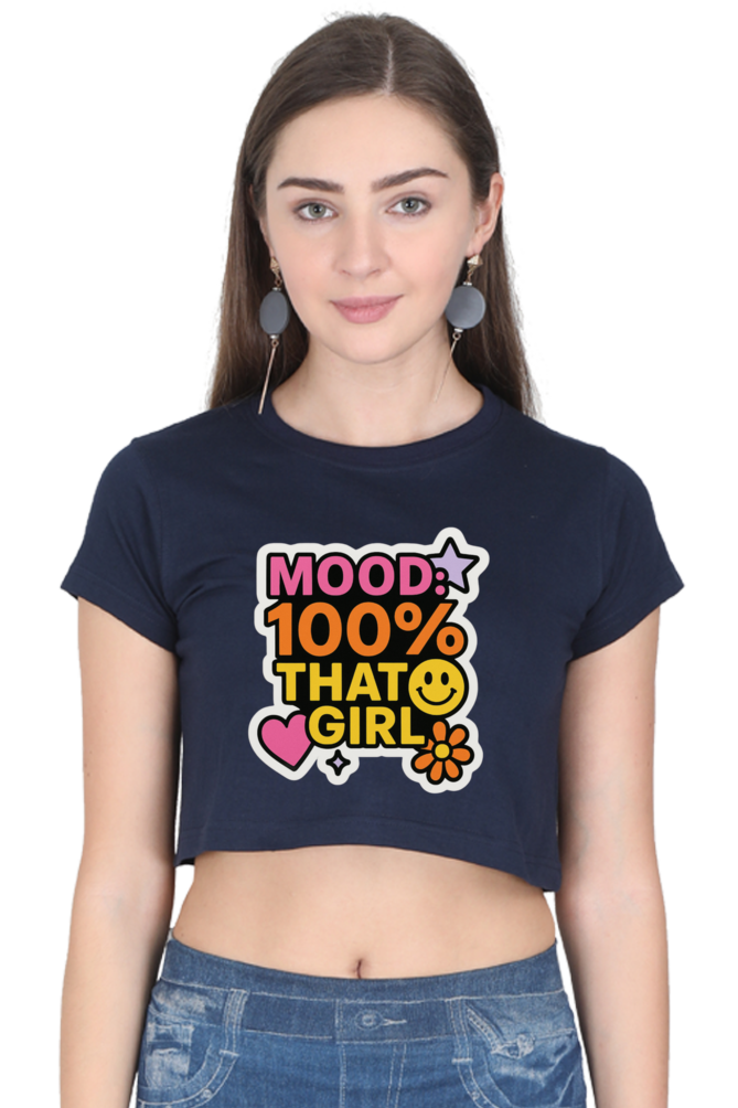 Mood: 100% That Girl – Women’s Cotton Crop Top | Bold Graphic Tee | Bio-Washed & Pre-Shrunk