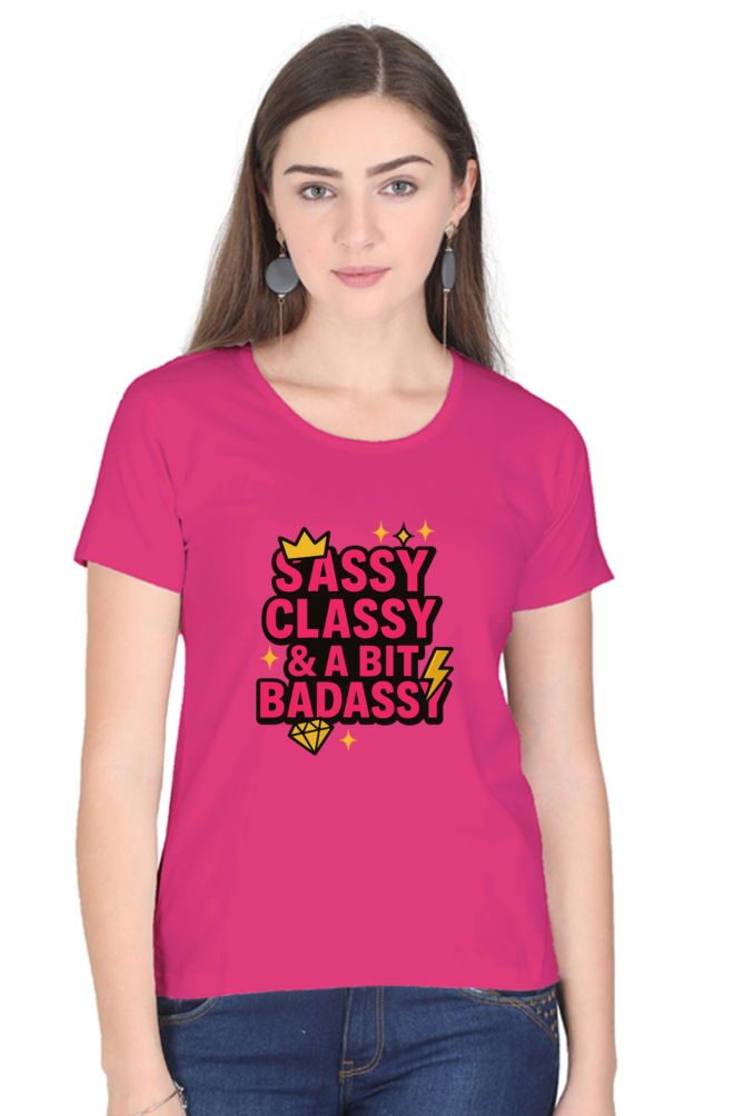 Sassy Classy & A Bit Badassy Women’s T-Shirt – 100% Cotton, 180 GSM, Unisex Fit | Bold Graphic Tee