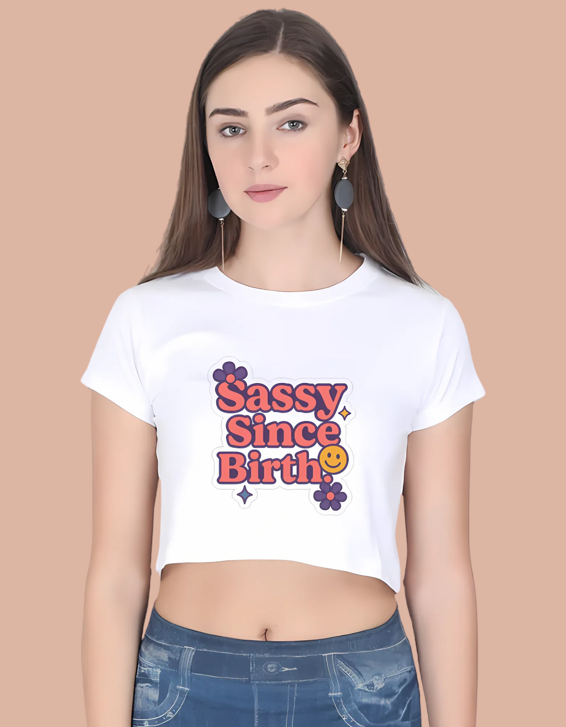 Sassy Since Birth Women's Crop Top – 100% Cotton | Funky Printed Casual Tee