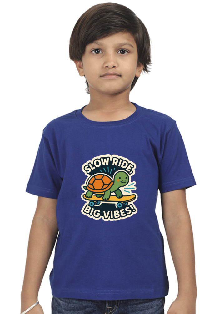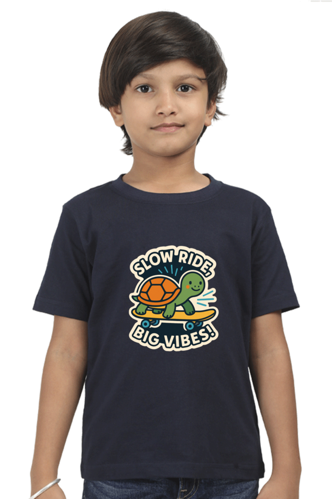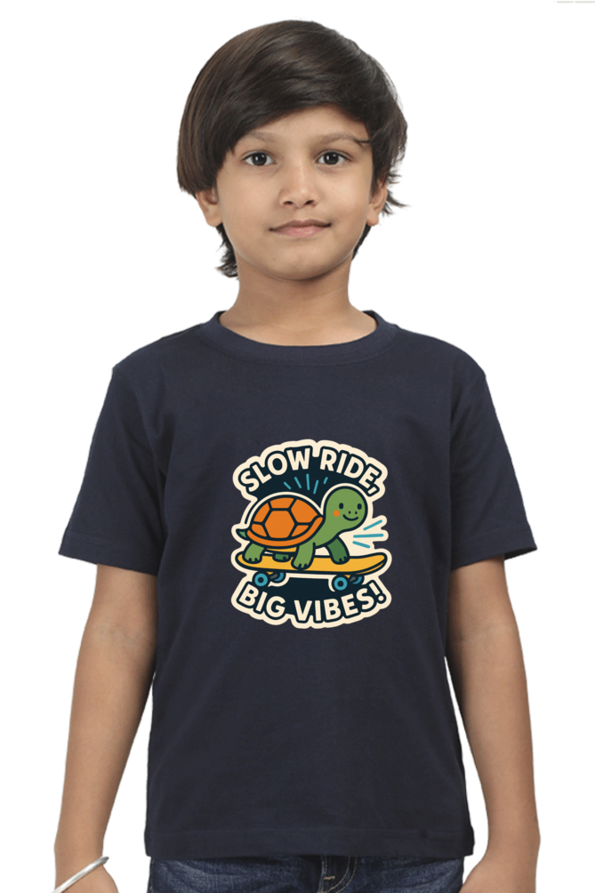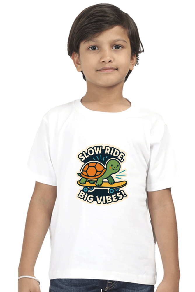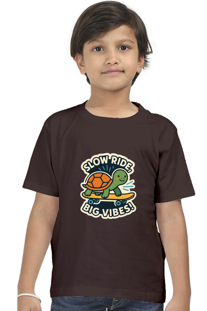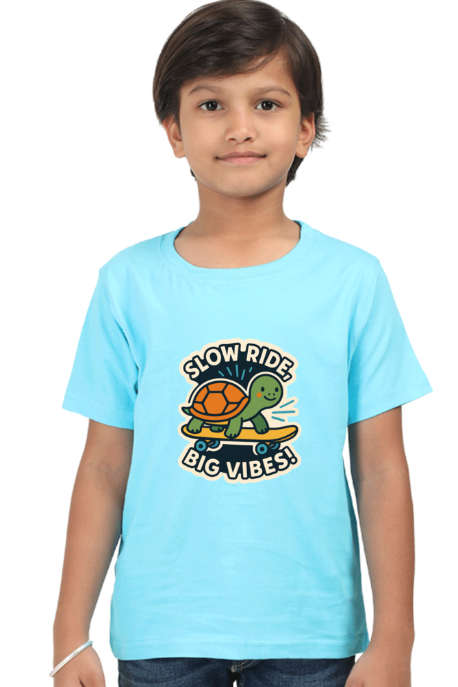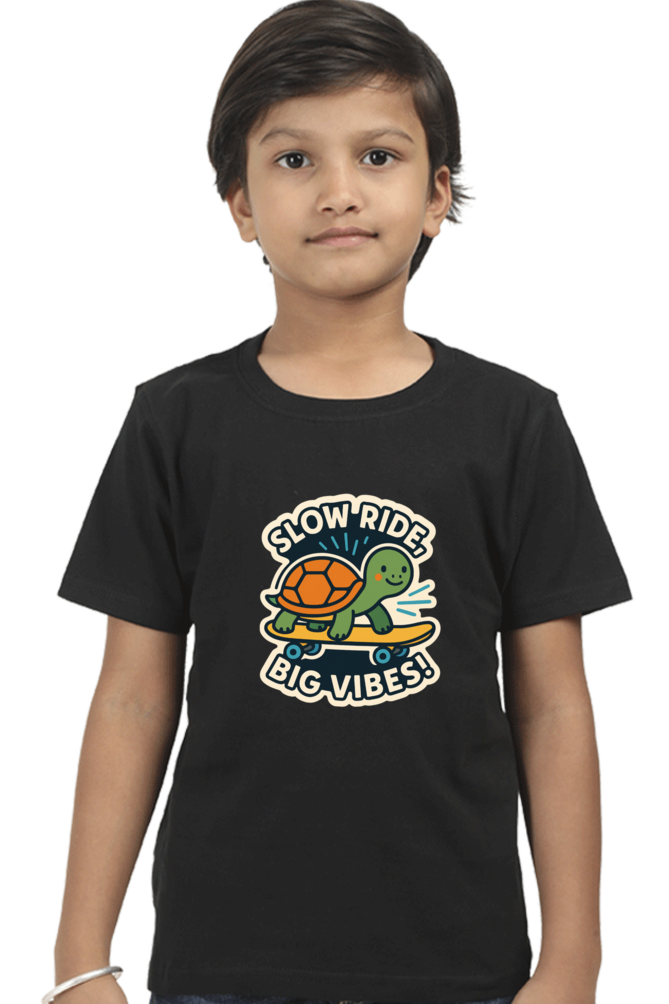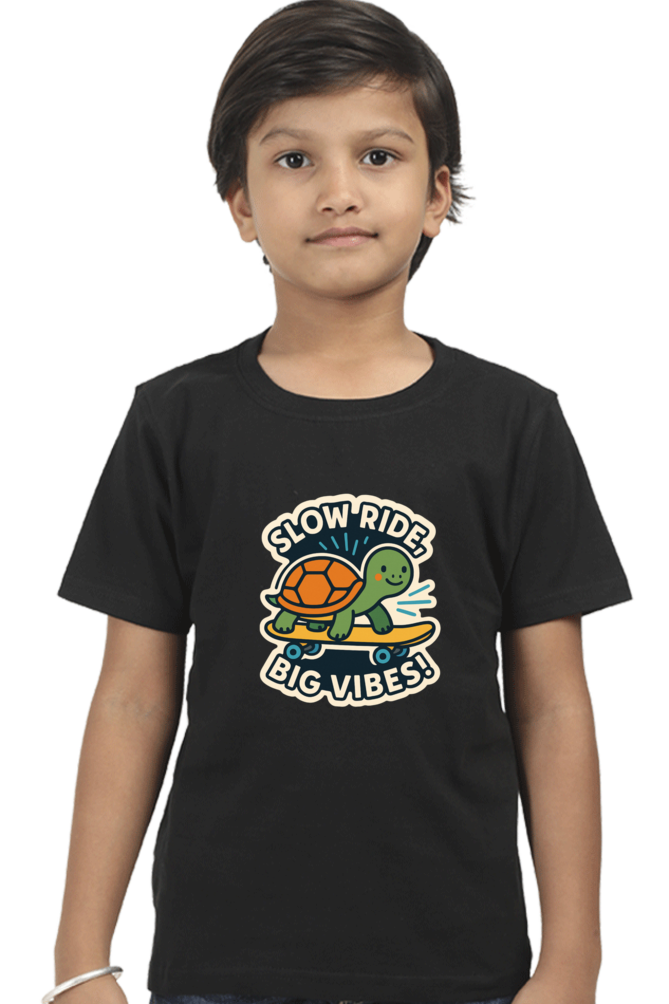 Slow Ride Big Vibes Kids T-Shirt for Boys – 180 GSM | 100% Cotton | Cool Turtle Skateboard Print