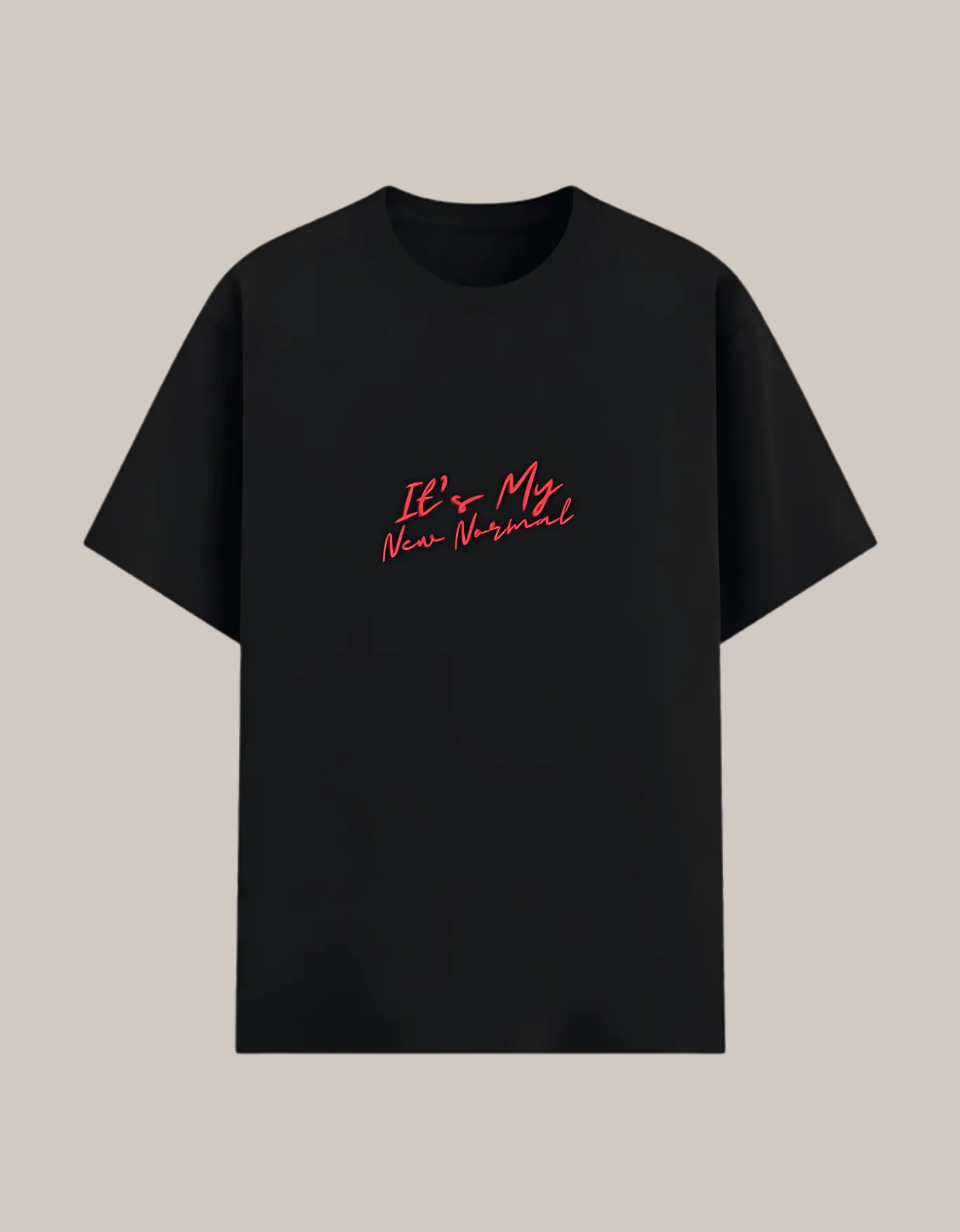 “It’s My New Normal” – A handwritten red slogan at the heart of the tee, empowering wearers to redefine their version of ‘normal’.