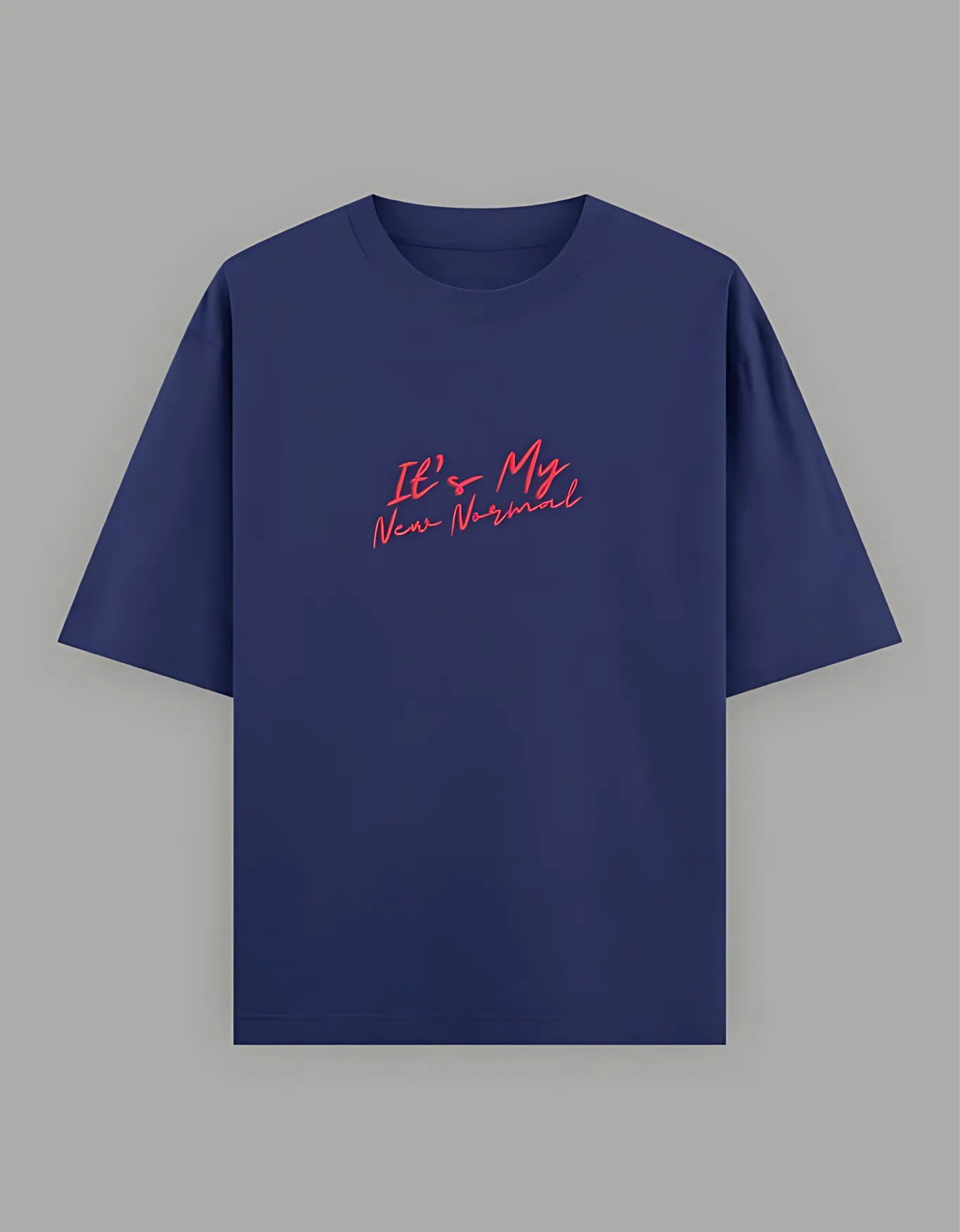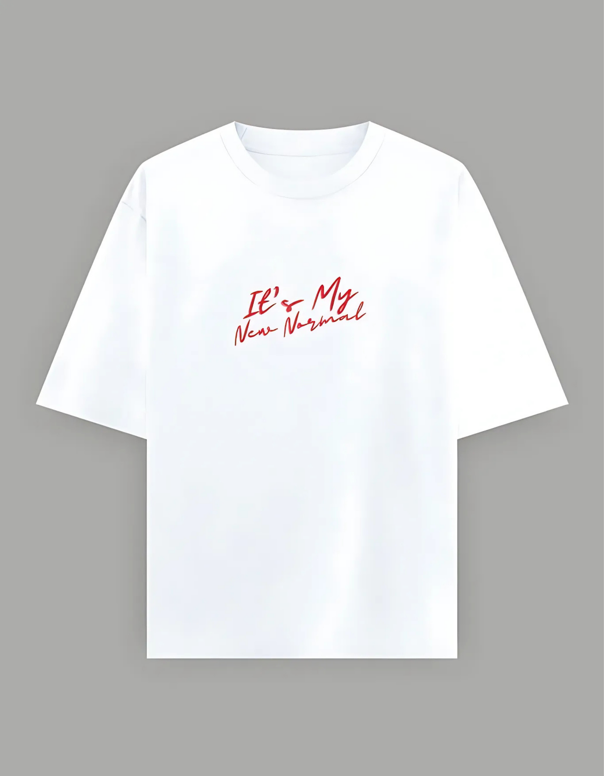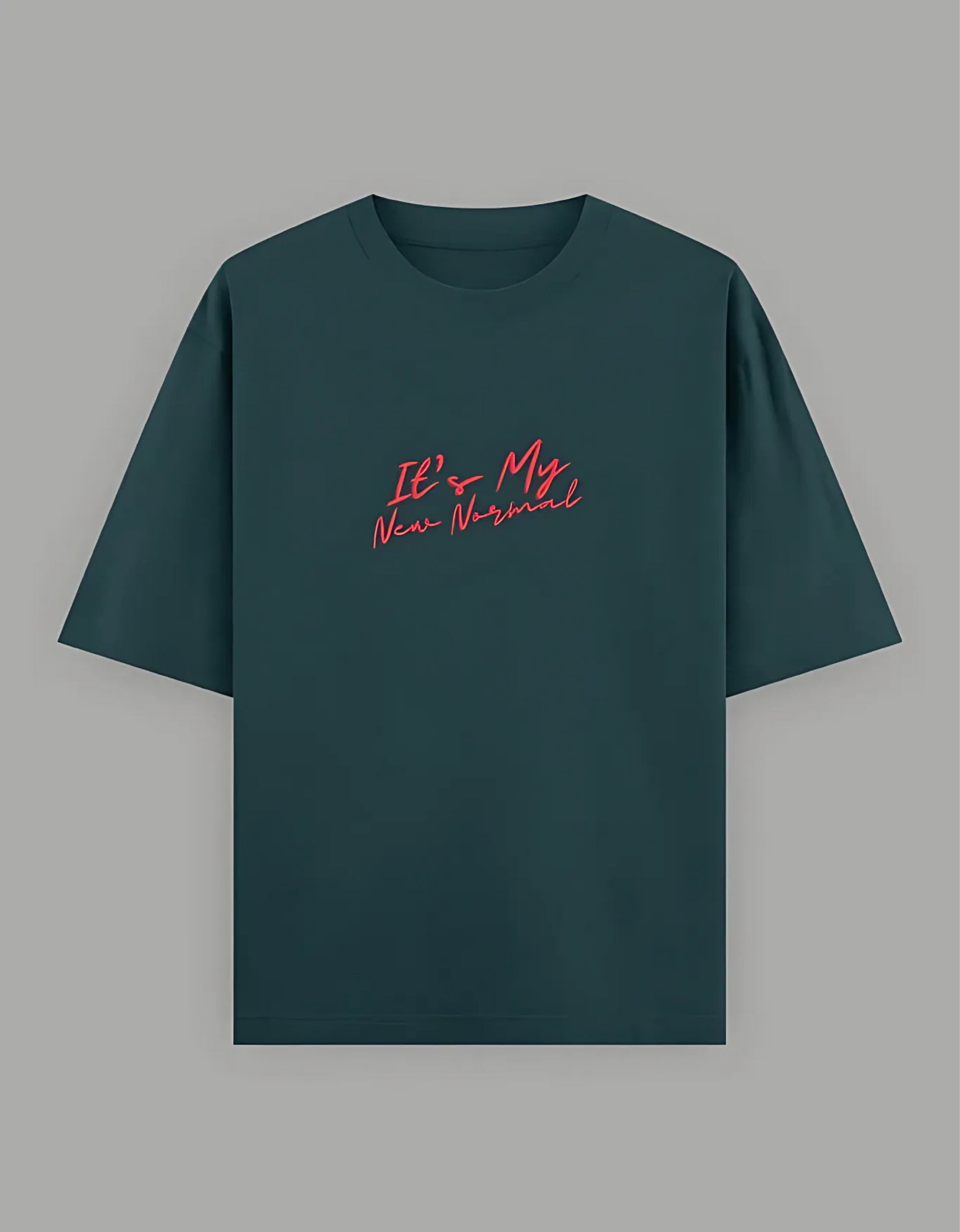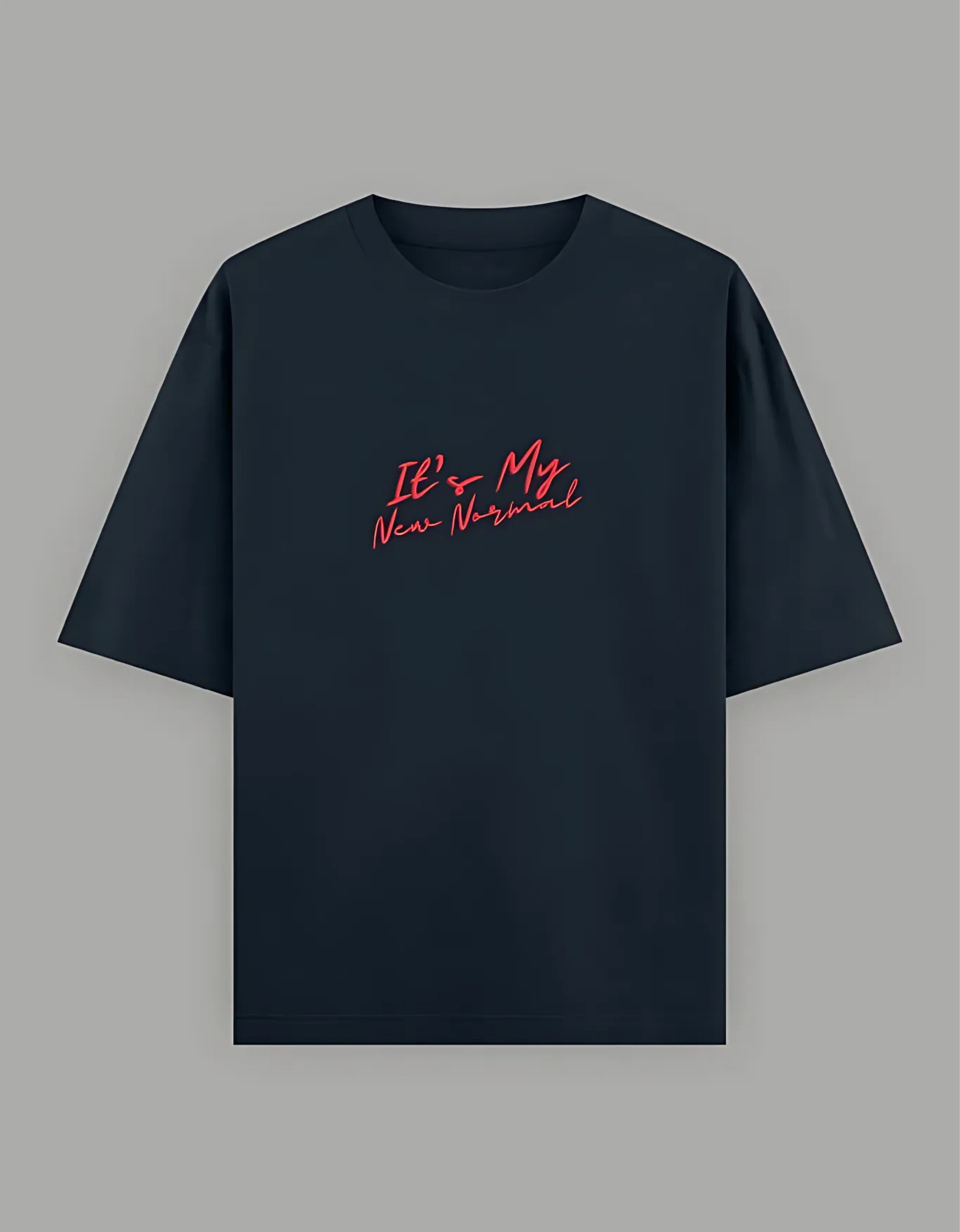 Unisex Oversized T-Shirt – “It’s My New Normal” Slogan Print | 240 GSM | 100% Super Combed Cotton | Bio-Washed | Streetwear Fit