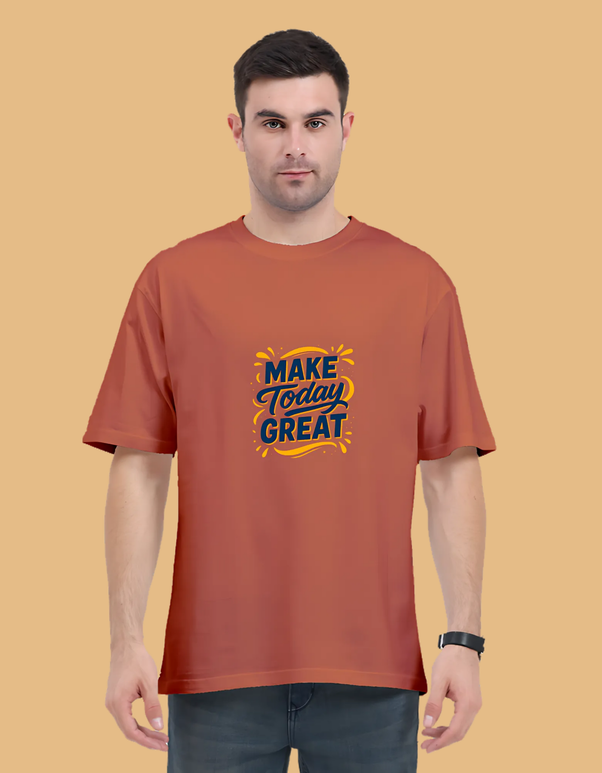 Unisex Oversized Classic T-Shirt – “Make Today Great” Motivational Graphic Print | 240 GSM, Super Combed Cotton