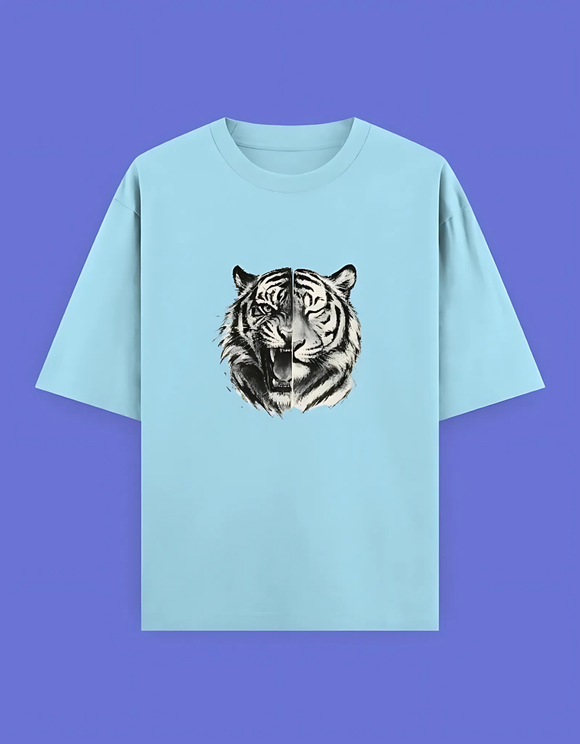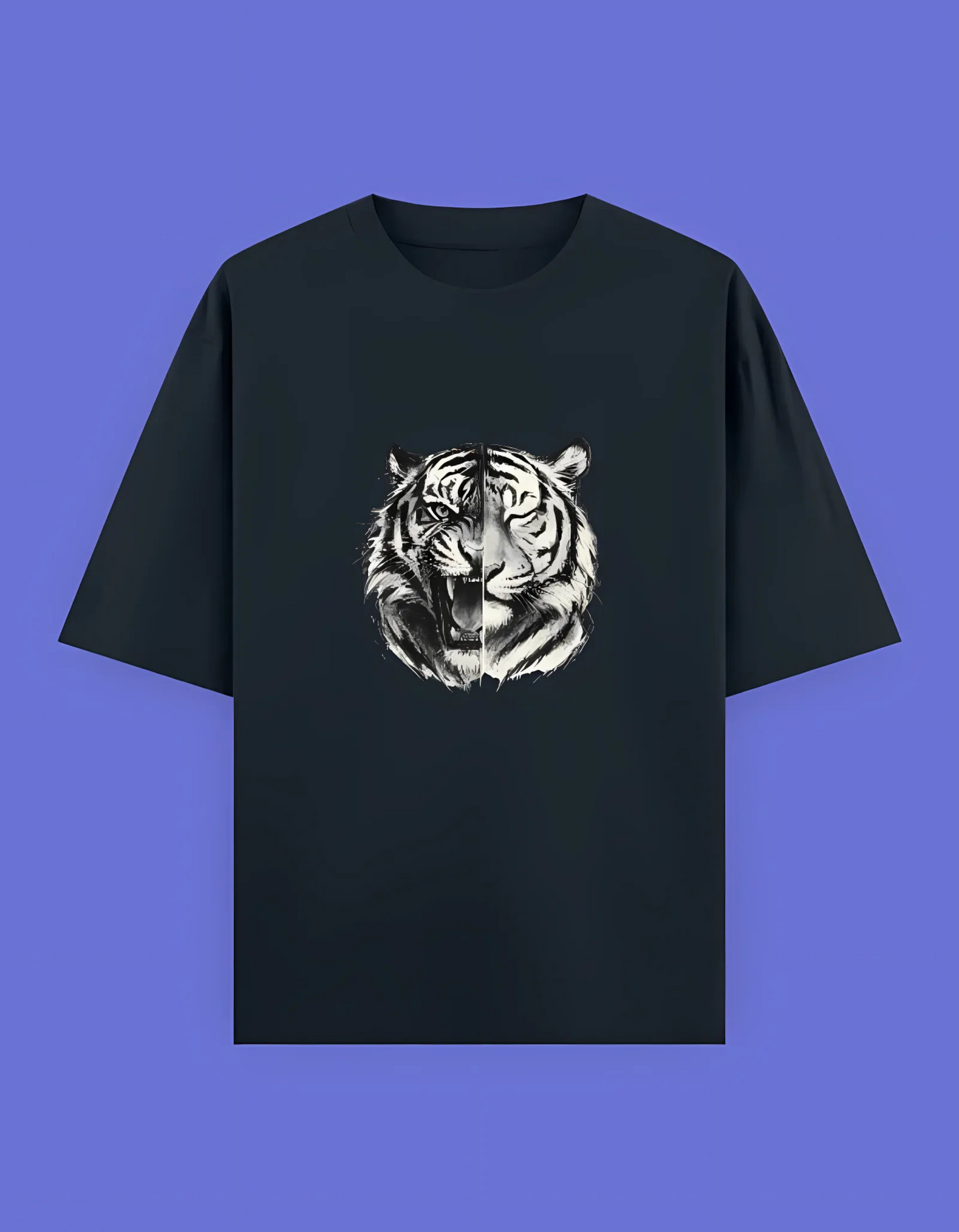 Unisex Oversized T-Shirt | 240 GSM 100% Cotton | Split Tiger Face Graphic | Bio-Washed & Pre-Shrunk