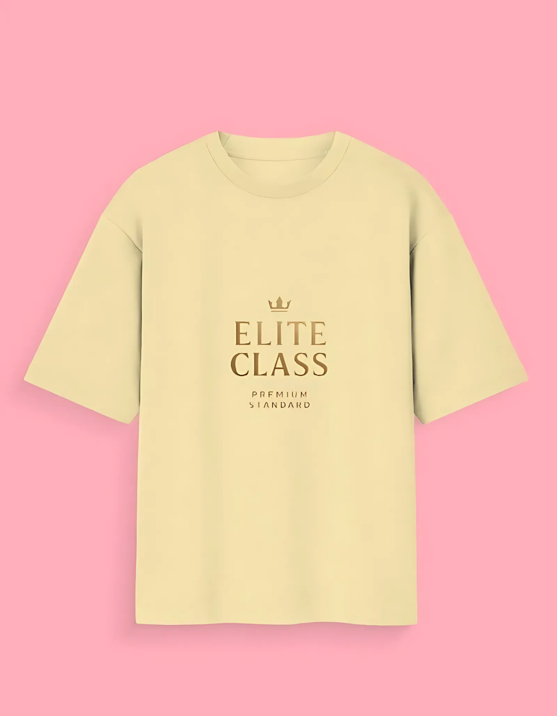 Unisex Oversized T-Shirt – “Elite Class” Premium Gold Text Design | 180 GSM, 100% Cotton, Streetwear Fit