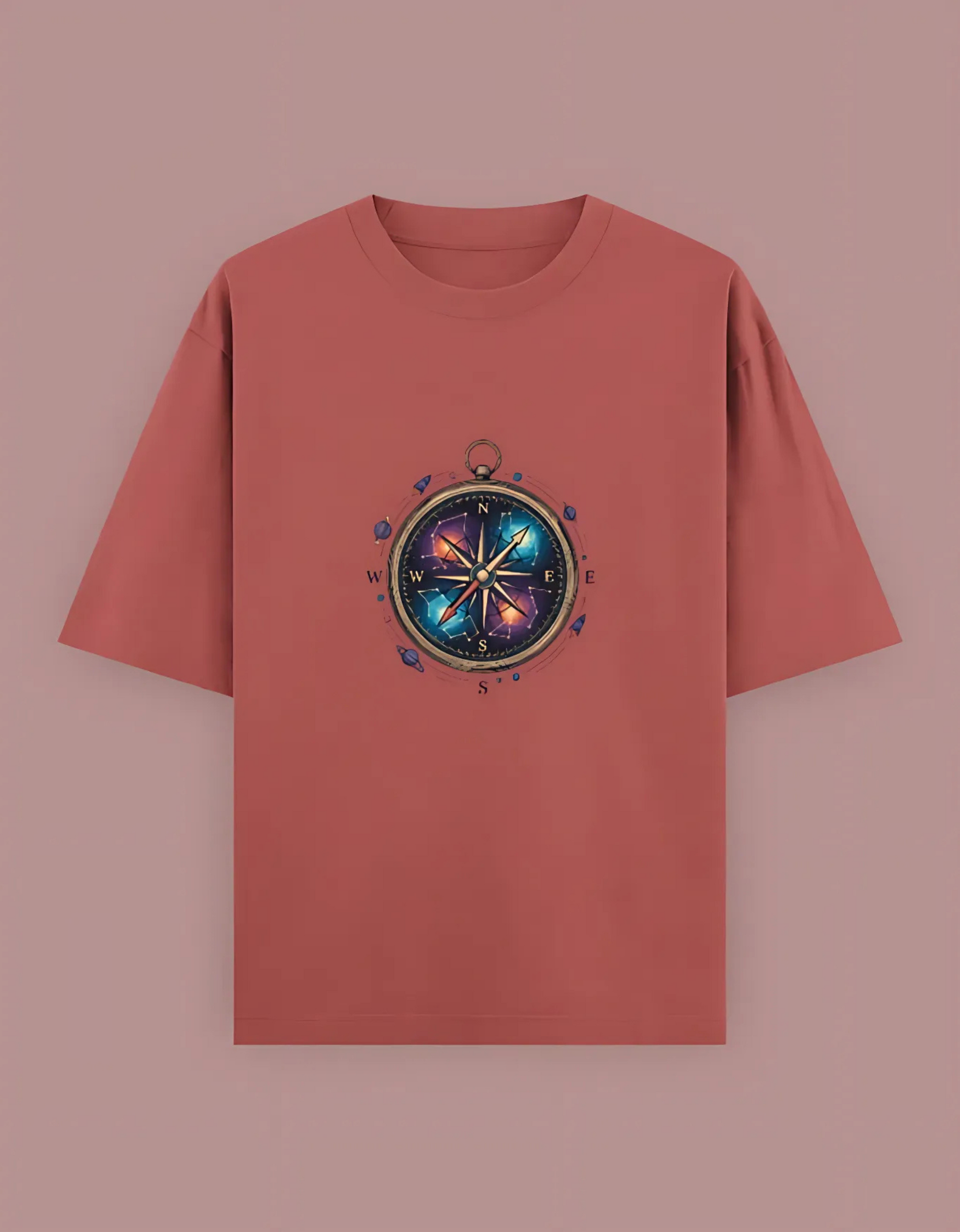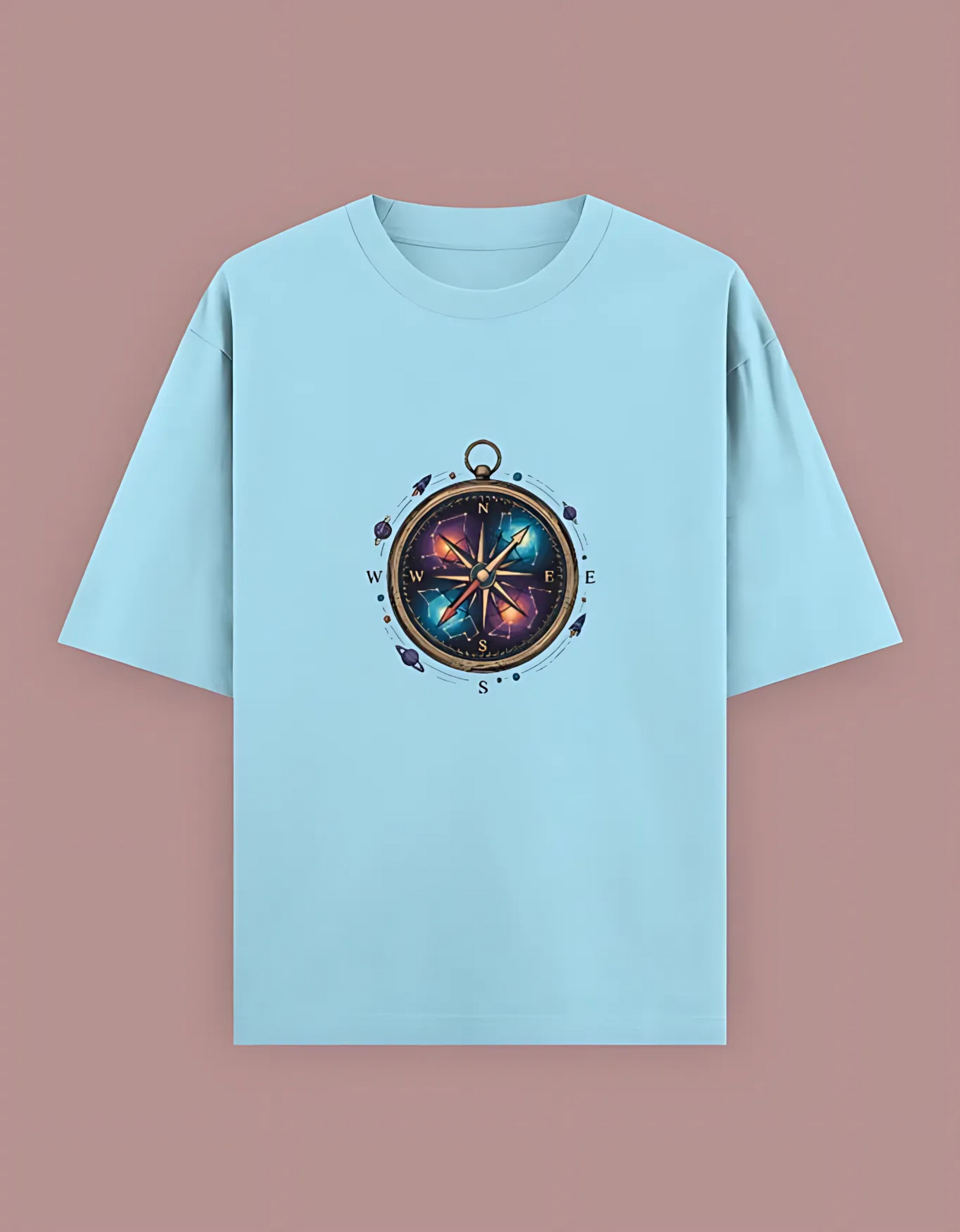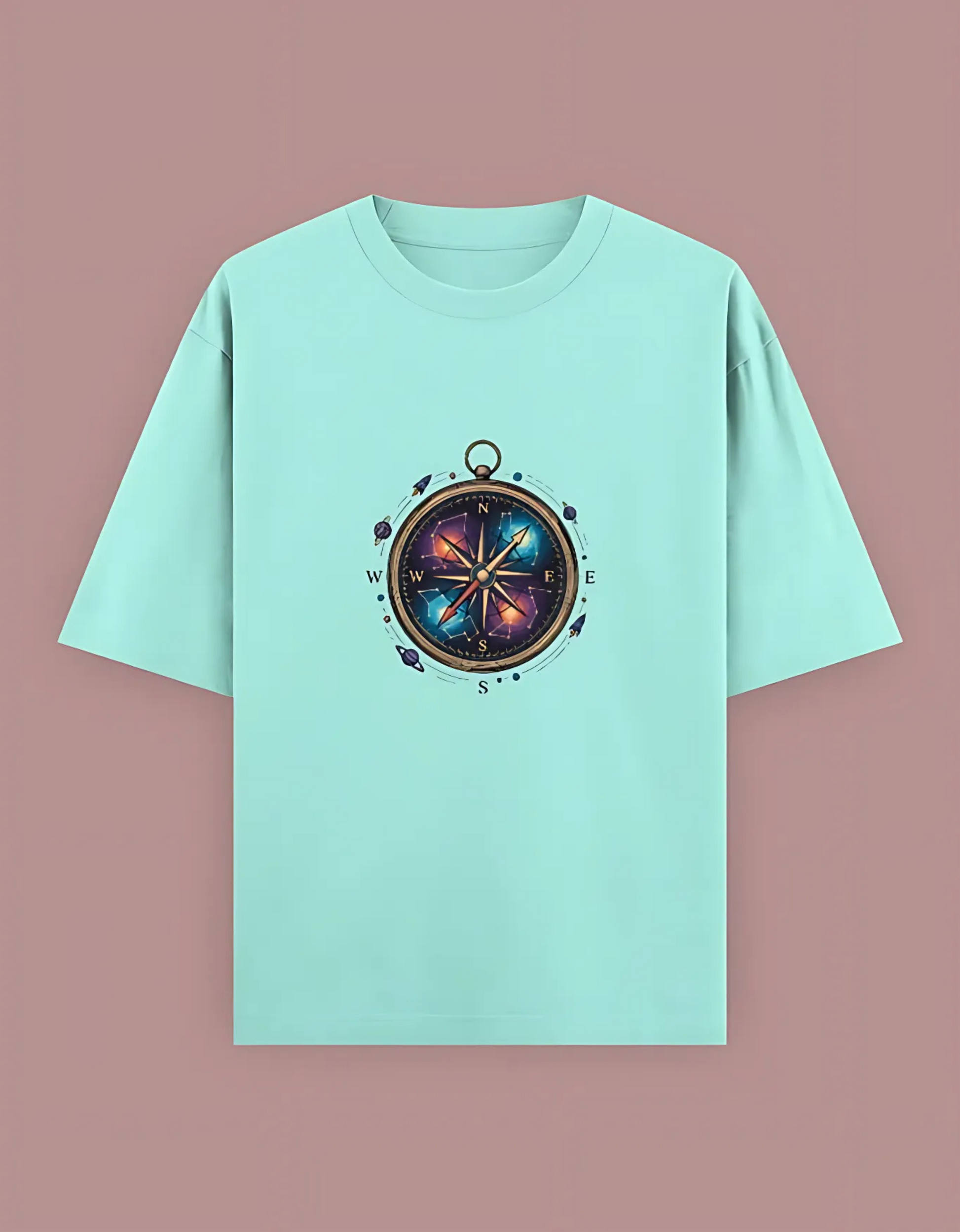Unisex Oversized T-Shirt with Cosmic Compass Print | 240 GSM Heavy Cotton | Space Explorer Graphic Tee
