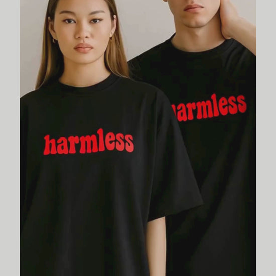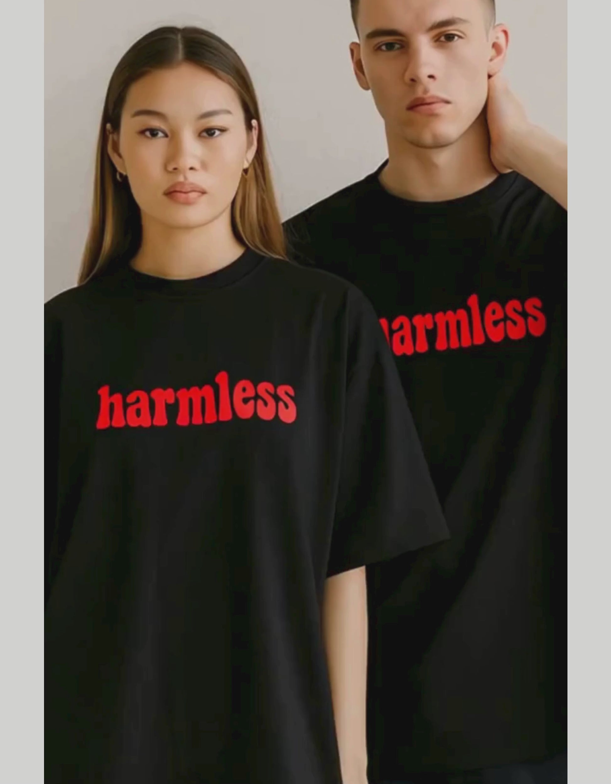 Step into effortless style with our Unisex Terry Oversized Drop Shoulder T-Shirt, featuring the bold “harmless” print in striking red on premium black fabric. Designed for comfort, durability, and everyday wear, this tee is the perfect blend of streetwear and casual fashion.
