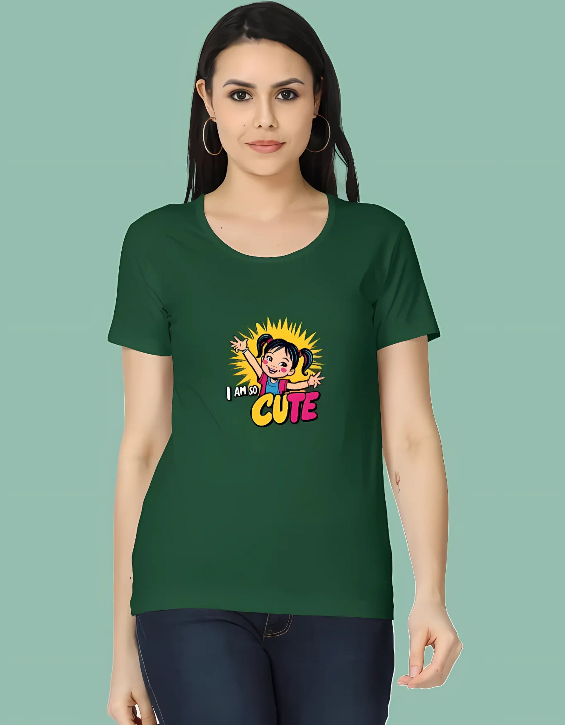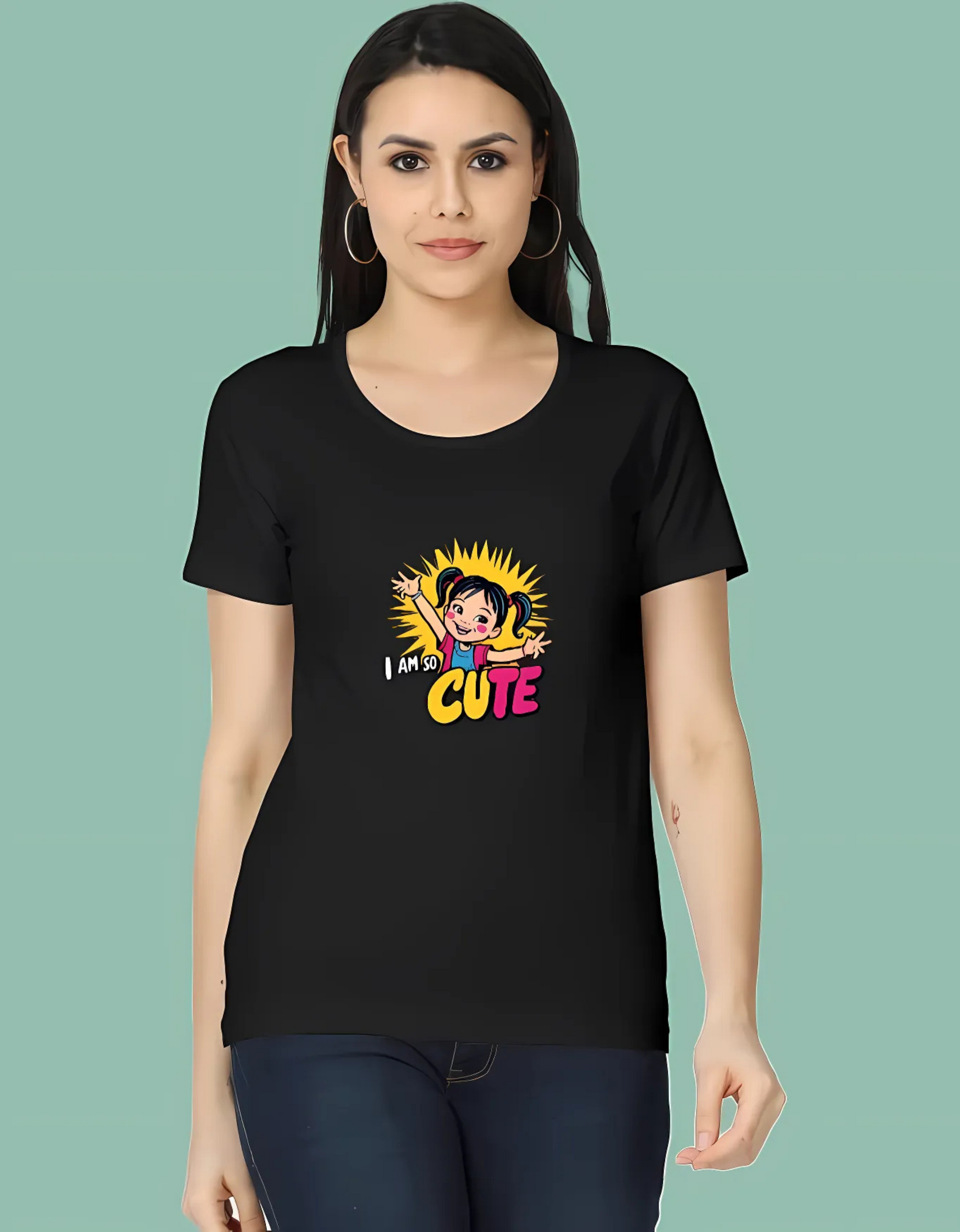 Women’s Classic Cotton T-Shirt – “I Am So Cute” Cartoon Girl Graphic | 180 GSM | Regular Fit | Vibrant Print