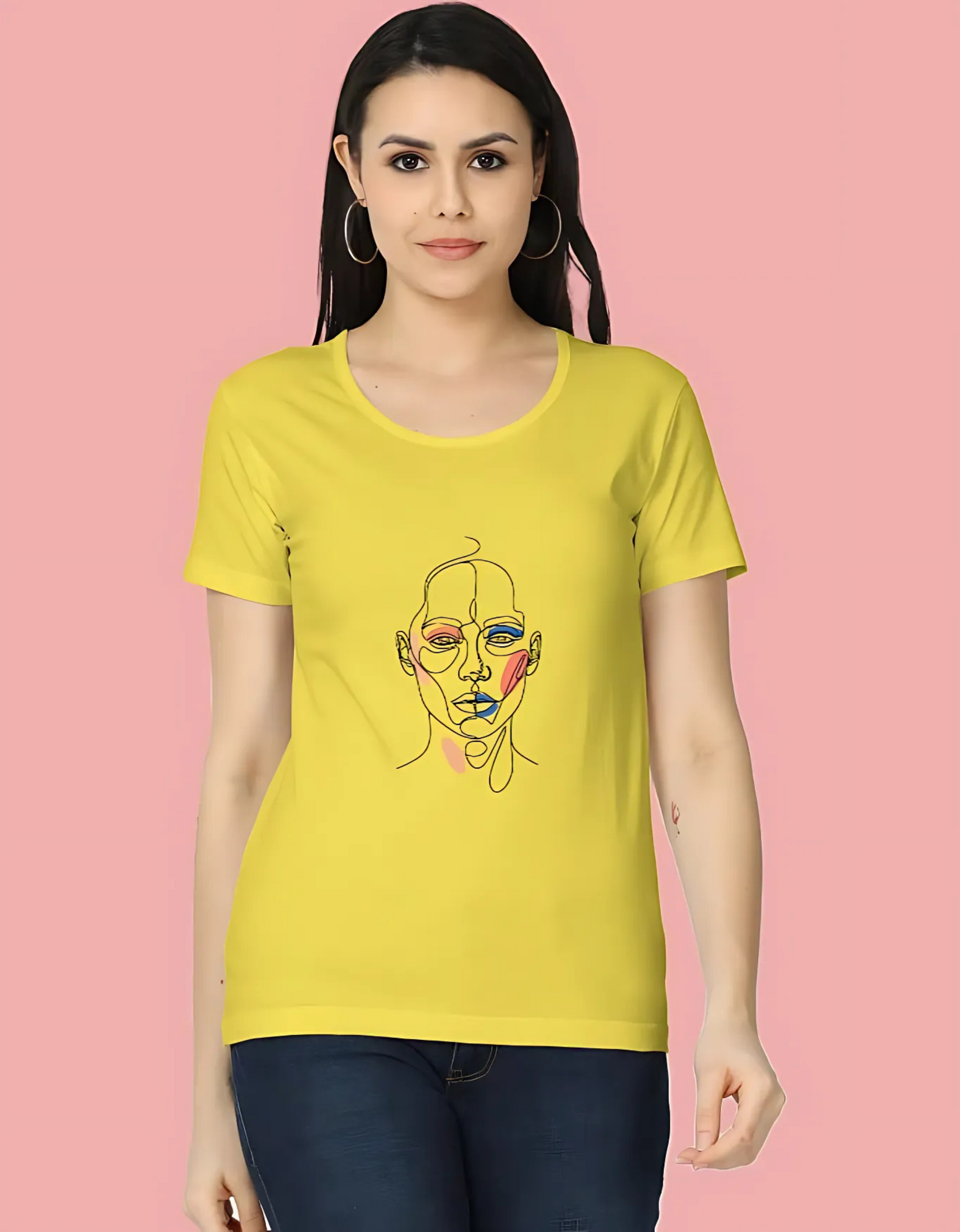 Women’s Classic T-Shirt with Abstract Face Art Print | 180 GSM Super Combed Cotton | Minimal Line Aesthetic Tee