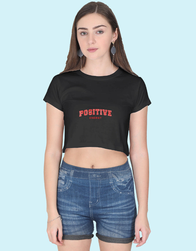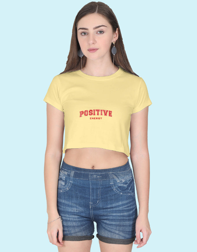 Women’s Cotton Crop Top – “Positive Energy” Motivational Slogan Print | 180 GSM | Bio-Washed | Trendy Casual Fit