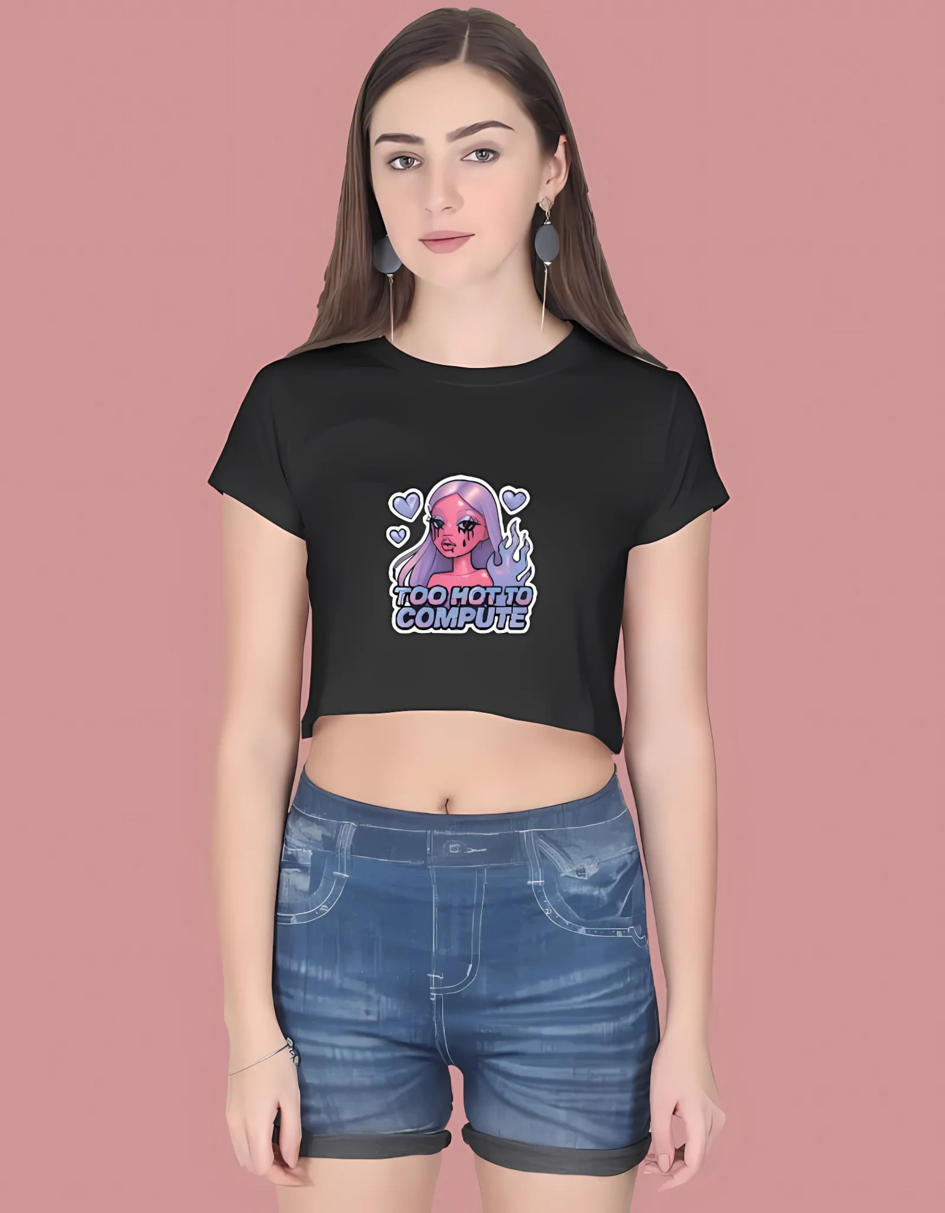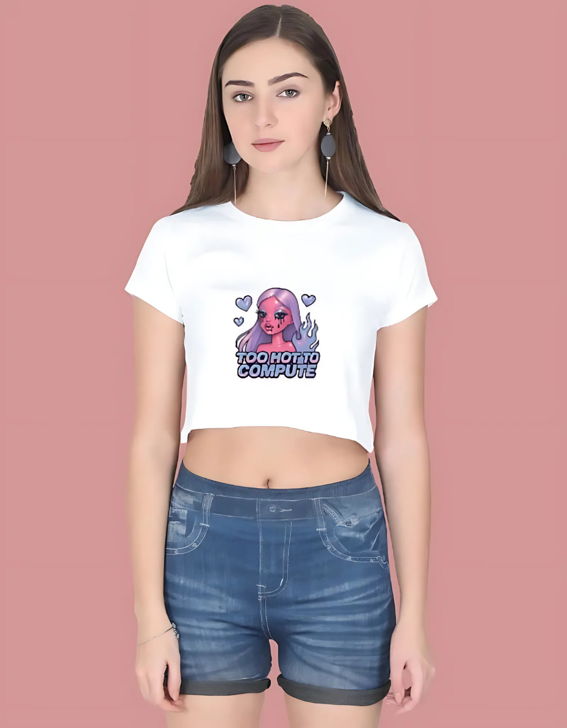 Women’s Cotton Crop Top – “Too Hot To Compute” Futuristic Barbie Print | 180 GSM | Trendy Streetwear Style