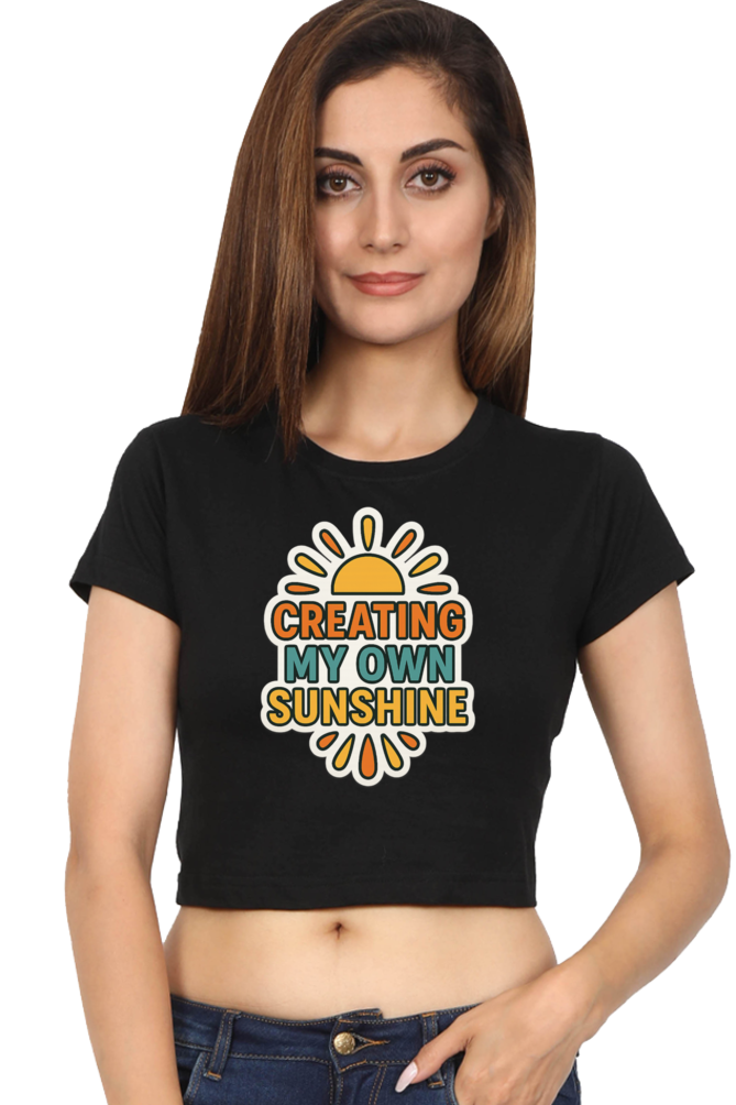 Women's "Creating My Own Sunshine" Printed Cotton Crop Top – 100% Cotton, 180 GSM, Feel-Good Fit