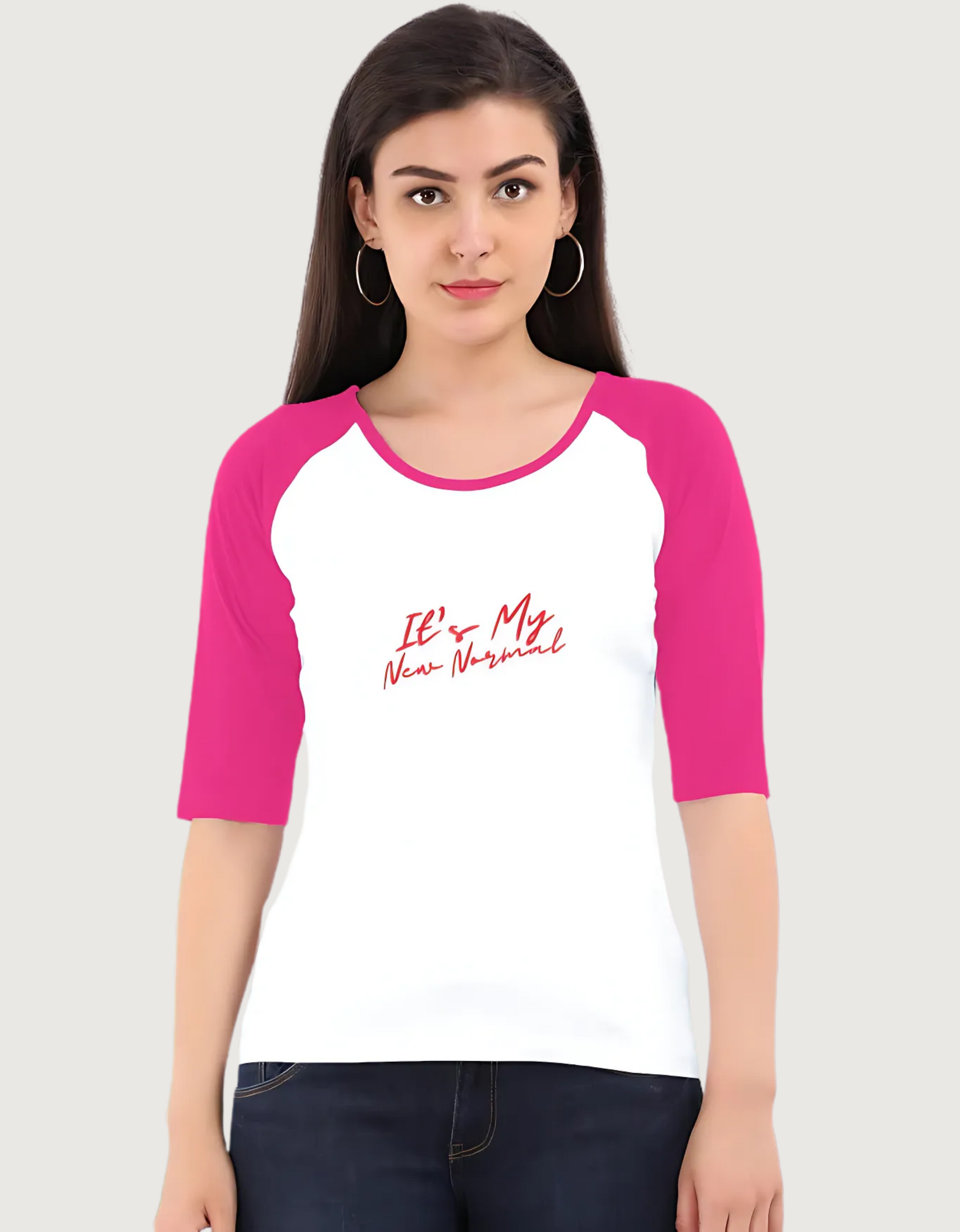 Women’s Black & White Raglan T-Shirt – “It’s My New Normal” Print | 100% Super Combed Cotton | Regular Fit | 180 GSM