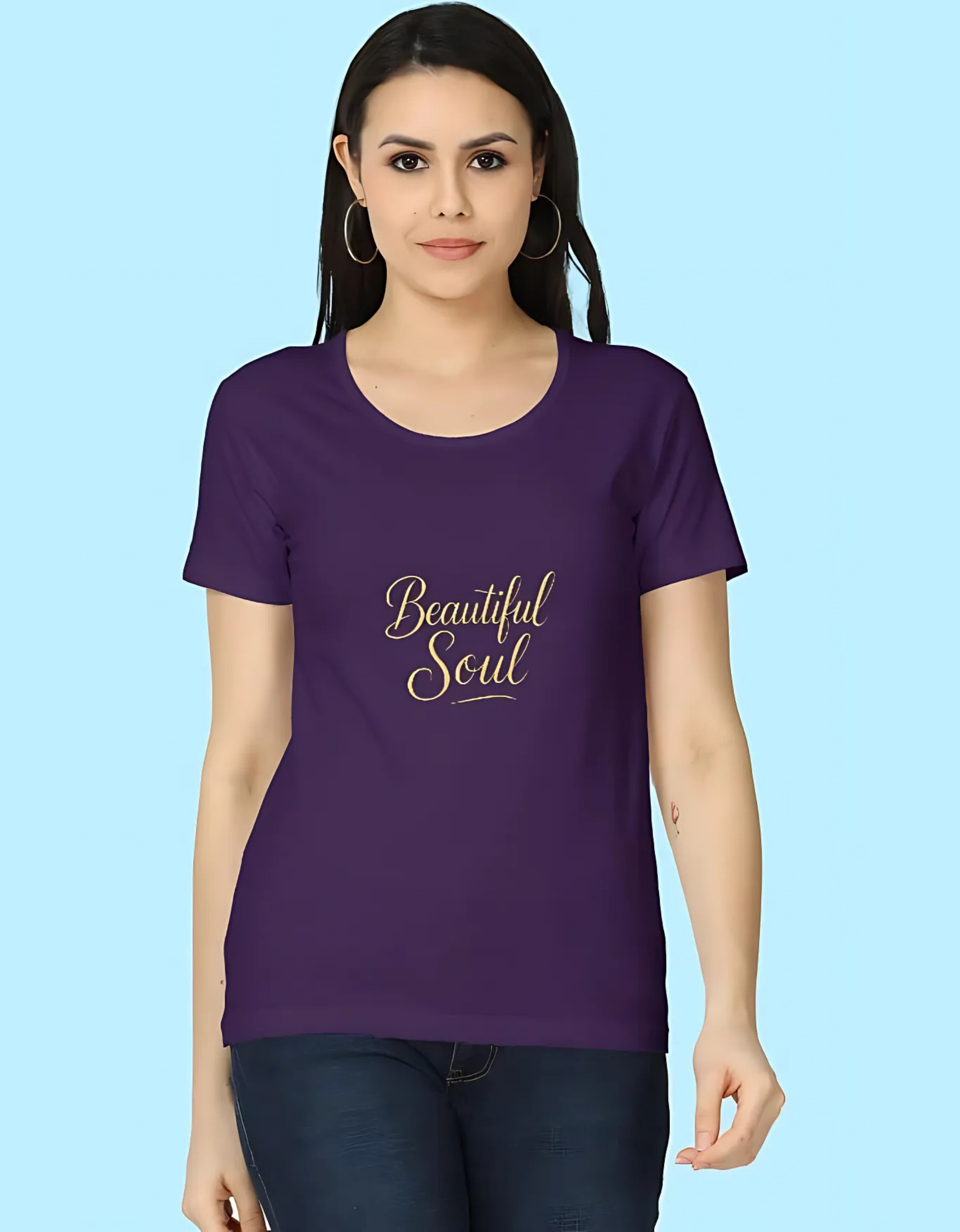 Women's Regular Fit 100% Cotton T-Shirt – Beautiful Soul Typography Print | Super Combed, Bio-Washed, Folded Neck
